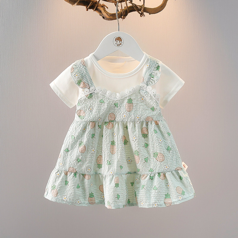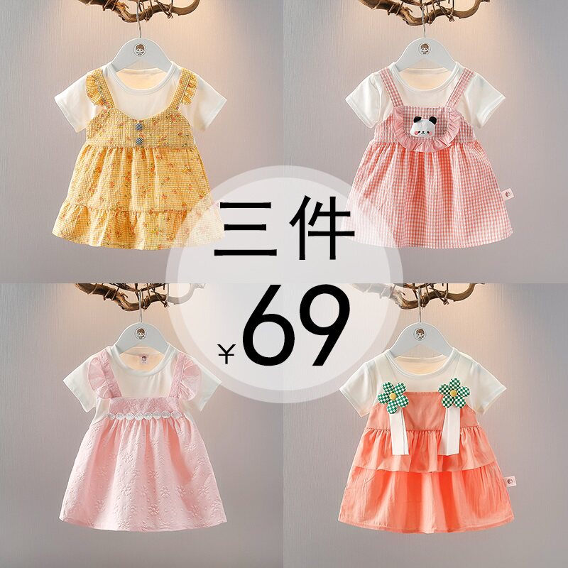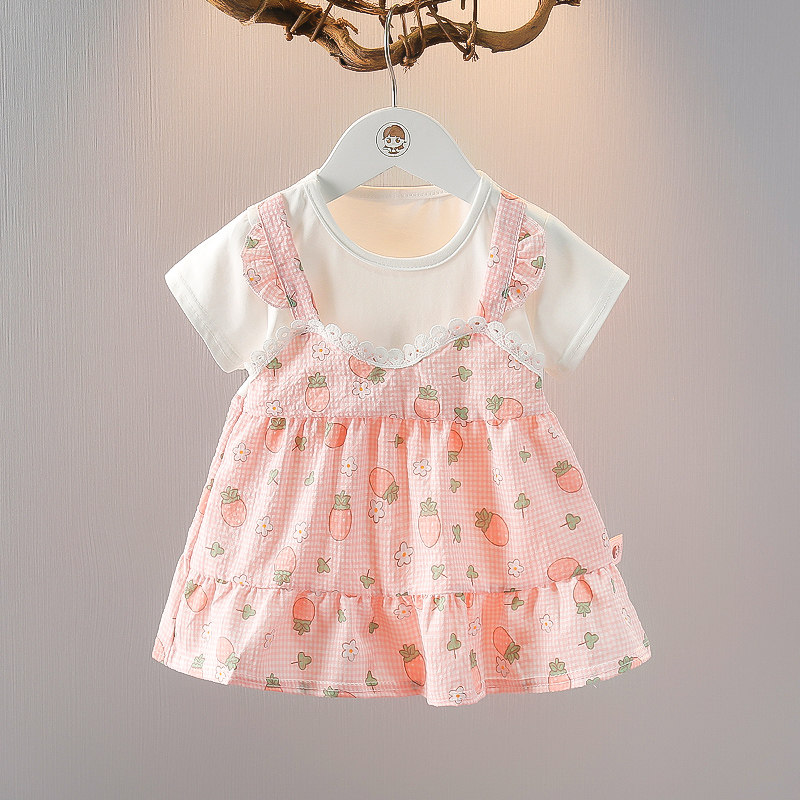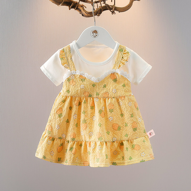 童装女童夏季短袖上衣时髦夏装女宝宝薄款假两件T恤婴儿夏天衣服
