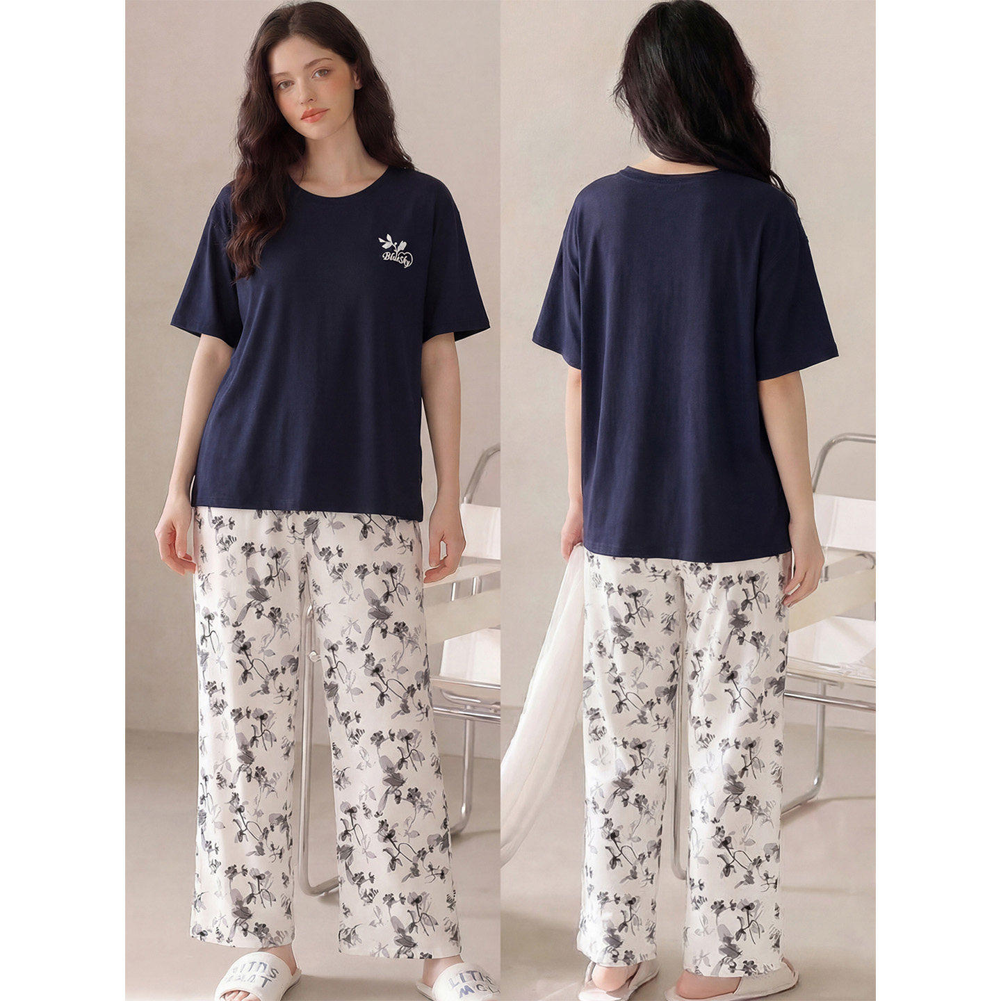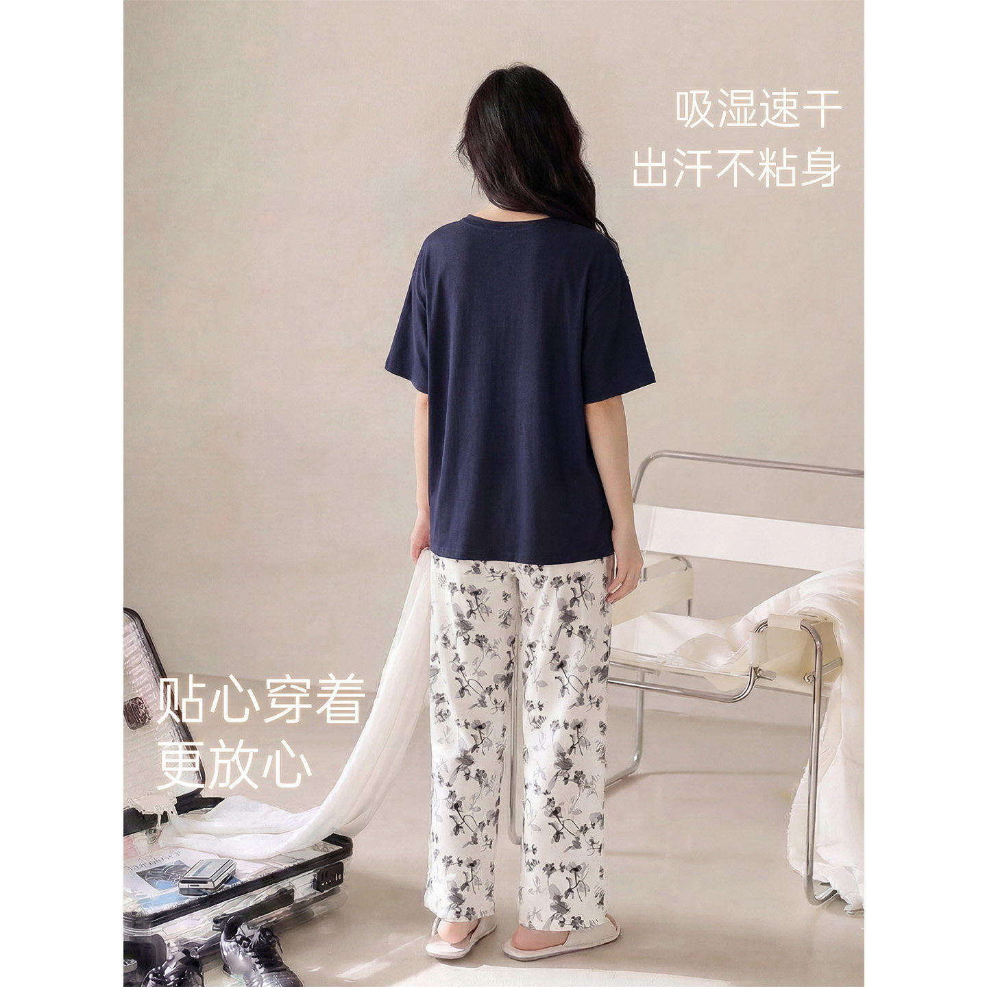 梦鸾韩系复古高级感纯棉家居服女款夏季2026新款短袖上衣长裤睡衣