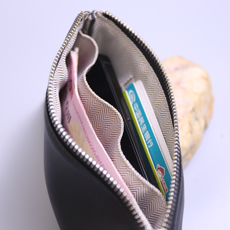 男女式真皮超薄长款钱包大容量简约钱夹卡包一体软皮手腕绳手机包