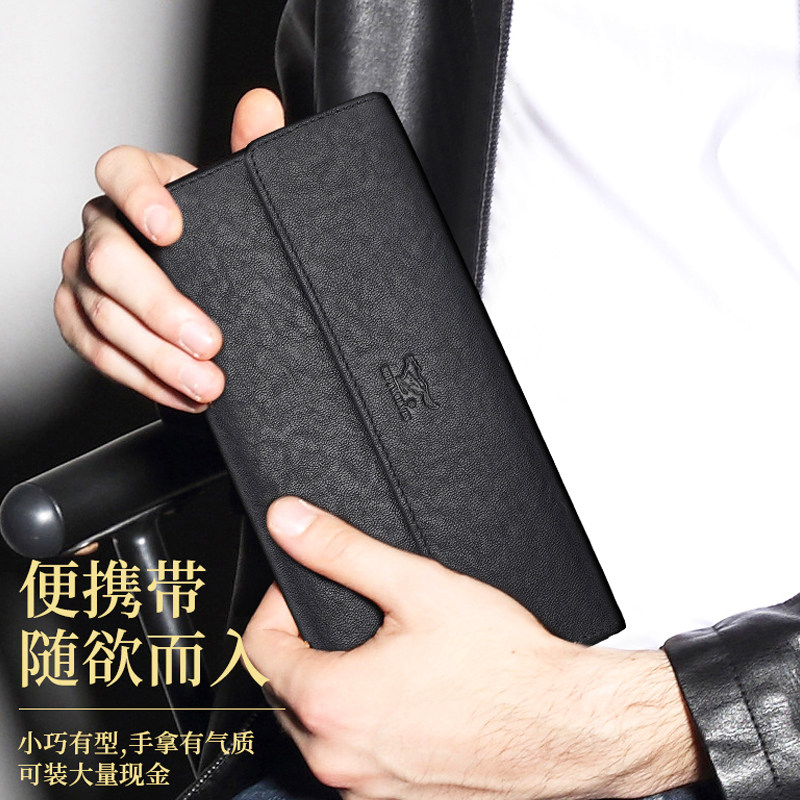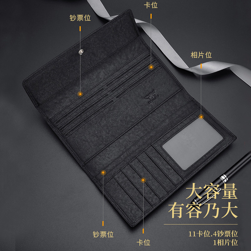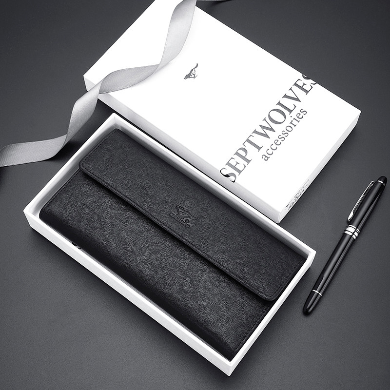 七匹狼男士长款钱包真皮按扣三折式钱夹纯头层牛皮票夹植鞣软皮