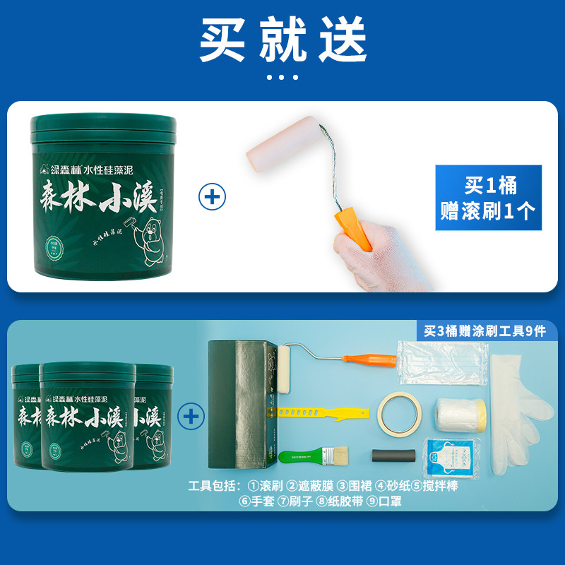 绿森林水性硅藻泥森林小溪家用翻新修补环保墙面漆非乳胶漆1KG5KG