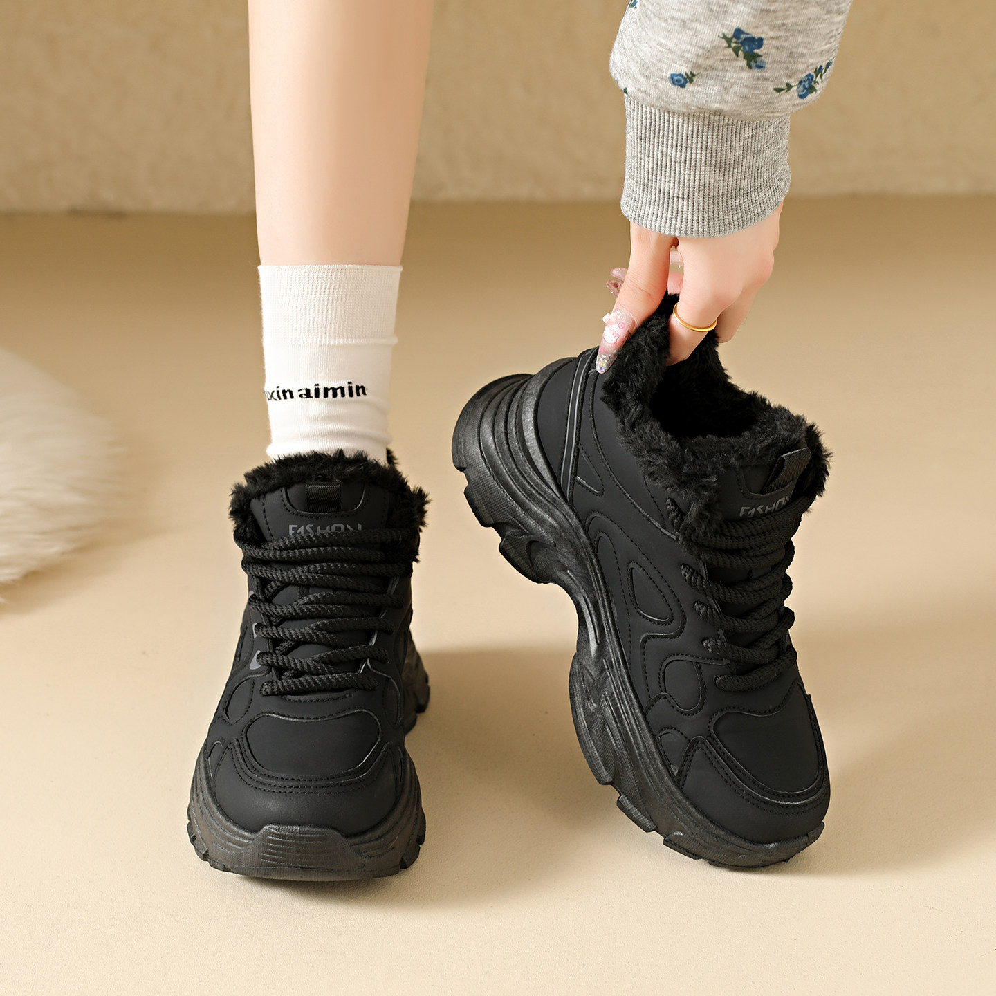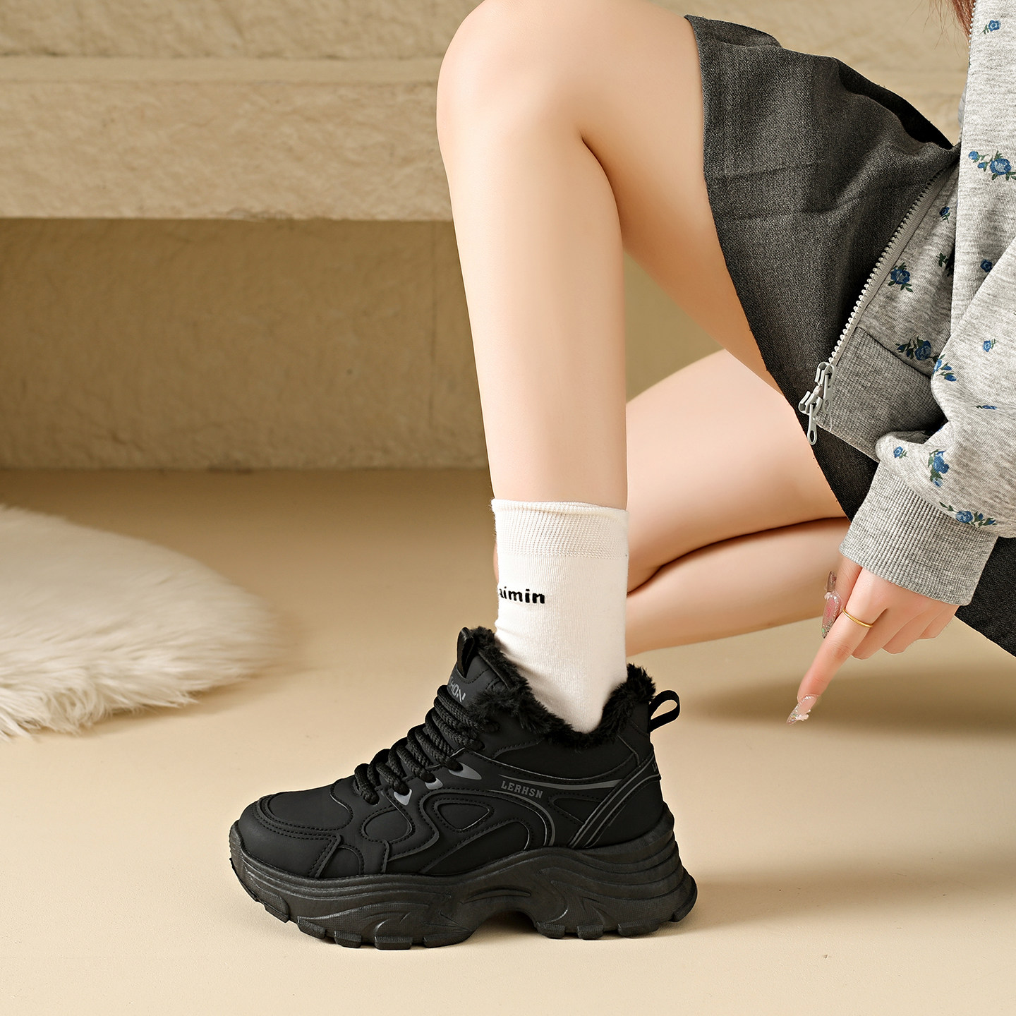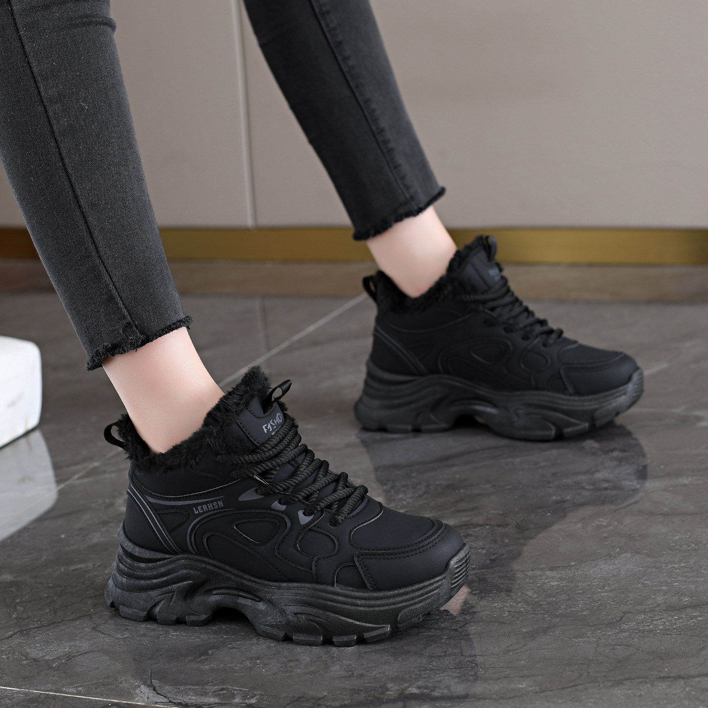 黑色加绒老爹鞋女款2026新款冬季厚底保暖大棉鞋增高显脚小运动鞋