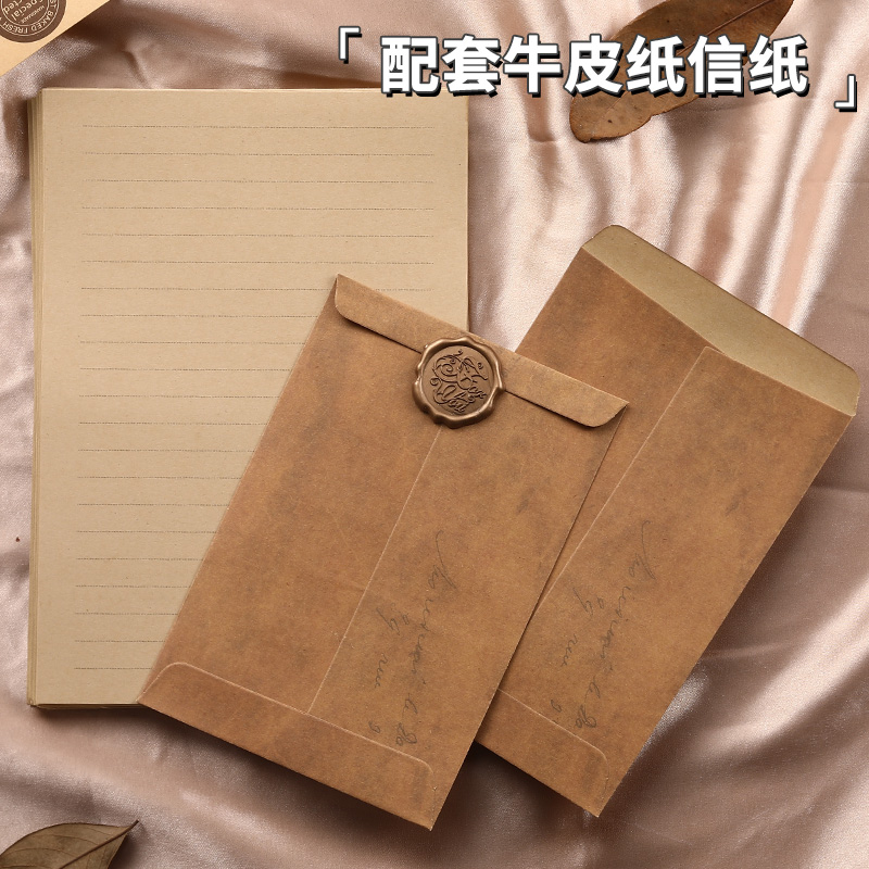 复古牛皮纸信封信纸套装高级感简约生日情书浪漫表白创意信件封口火漆印章高颜值加厚信封贺卡古风国风可定制