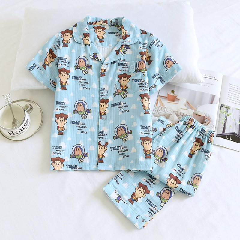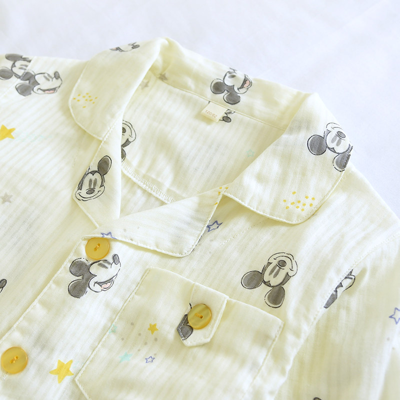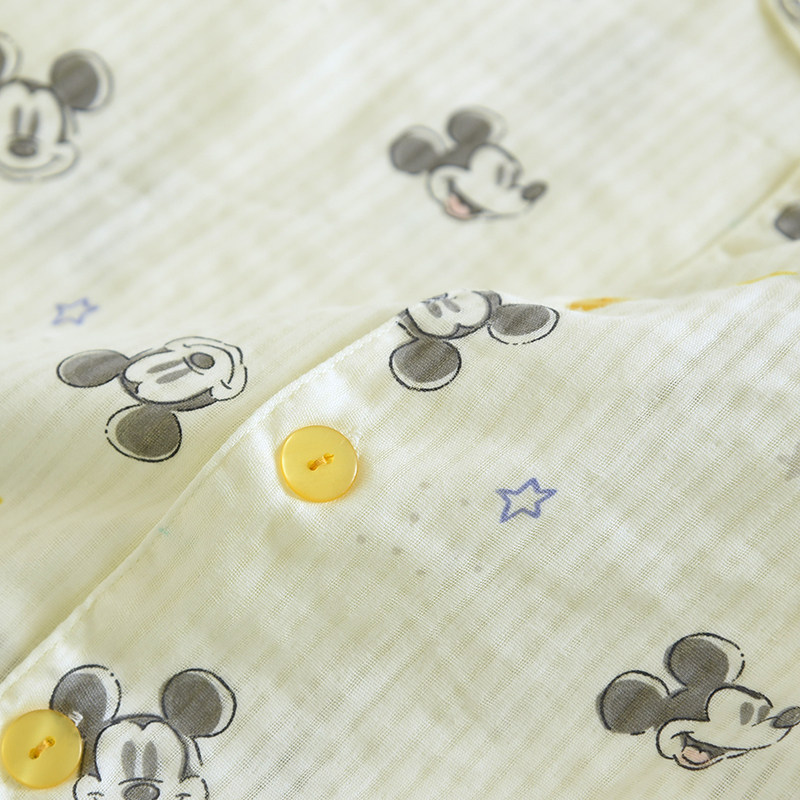 迪士尼夏季儿童纯棉纱布薄款米奇男童翻领短袖睡衣透气全棉家居服