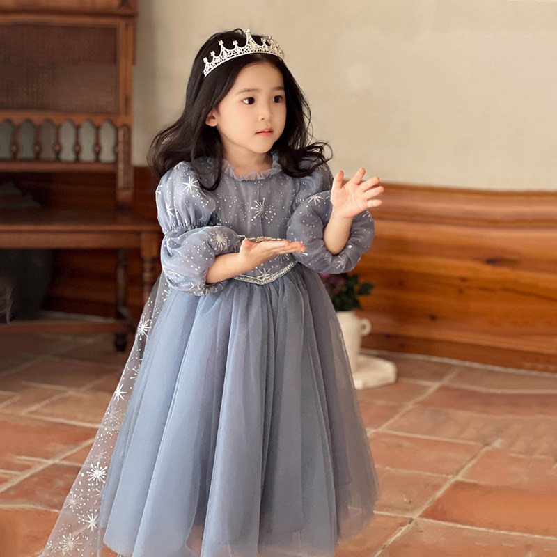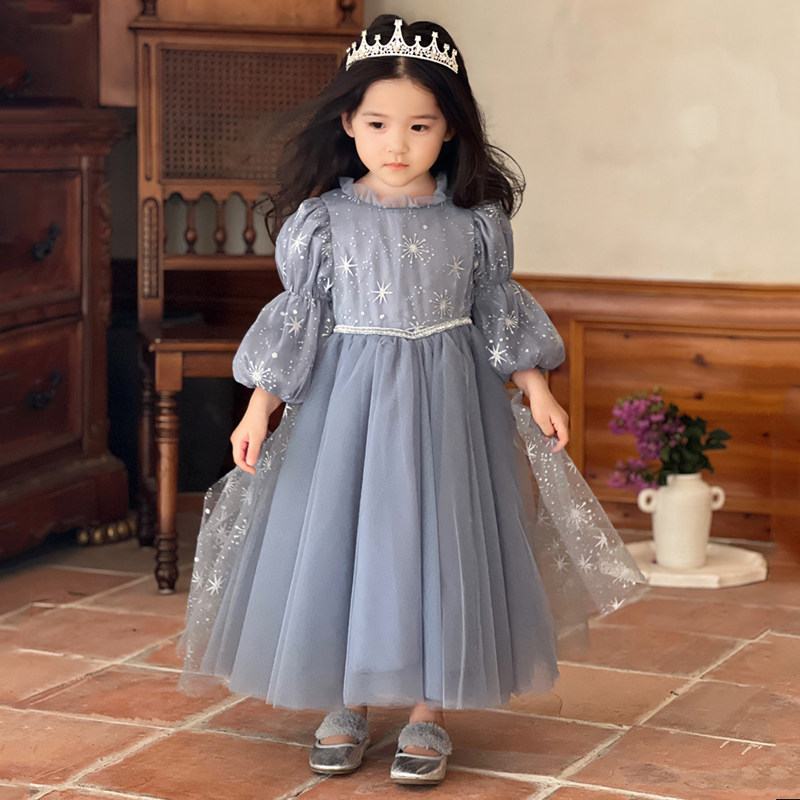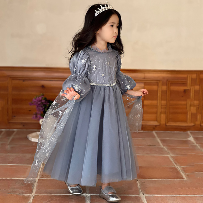 冰雪奇缘爱莎公主裙子女童秋冬高端小女孩生日礼服艾莎儿童连衣裙