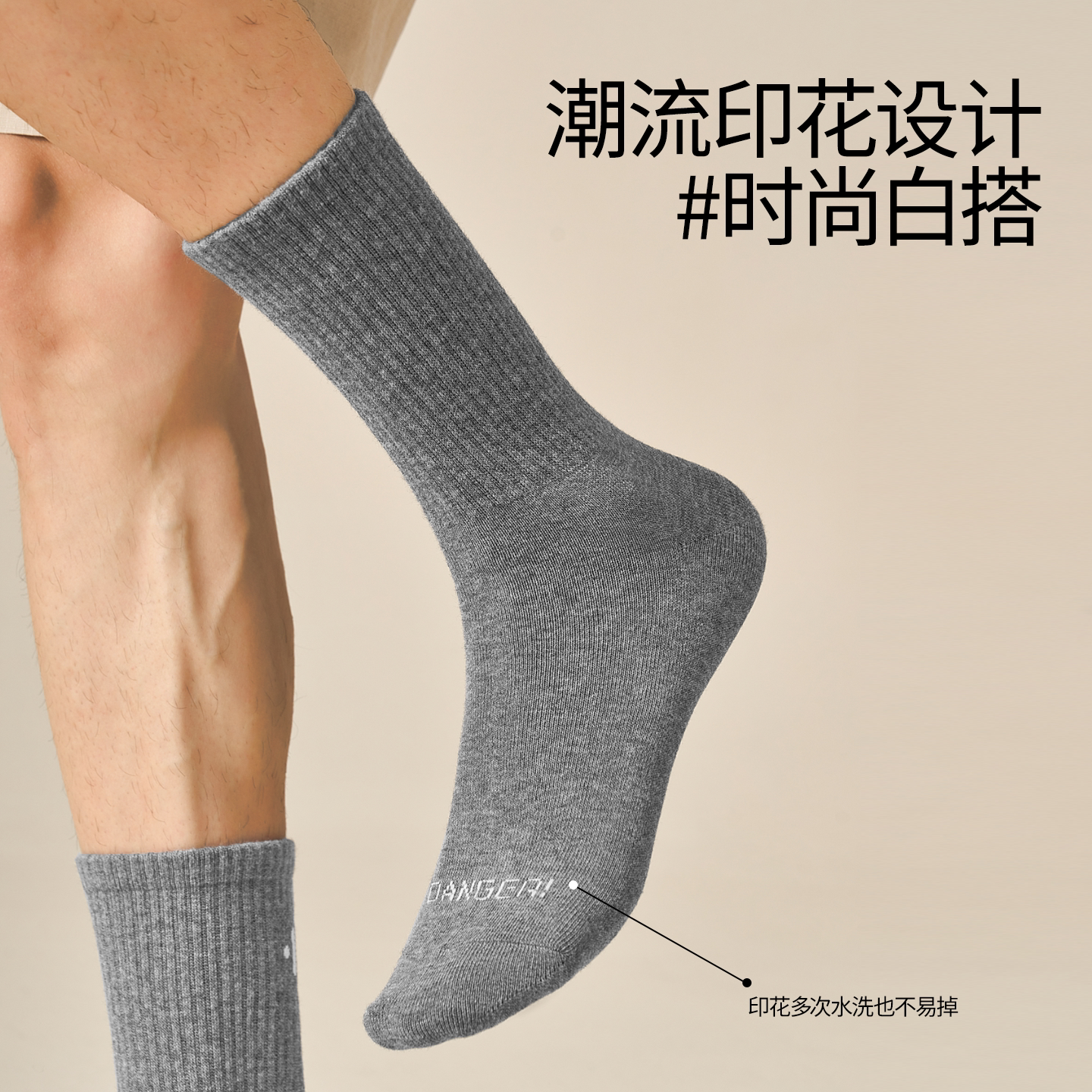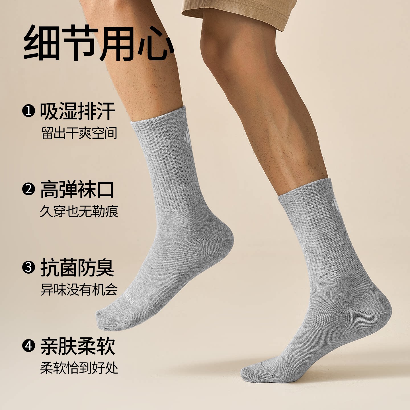 灰色青少年袜子男款7a抑菌防脚气防臭纯棉中筒男士学生跑步运动袜