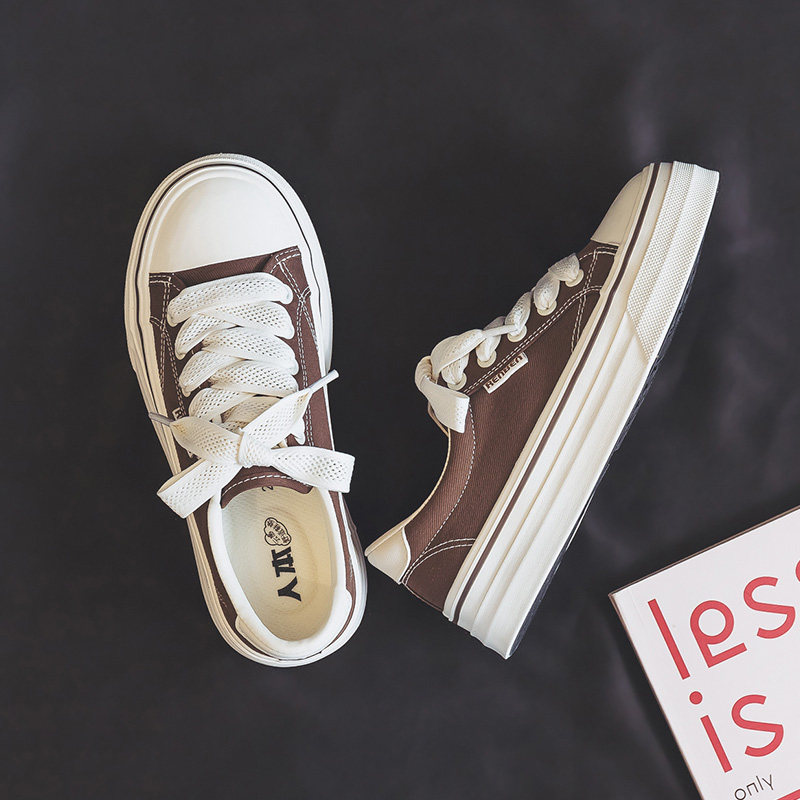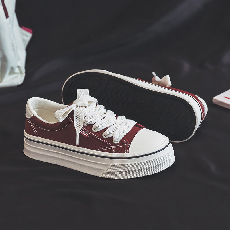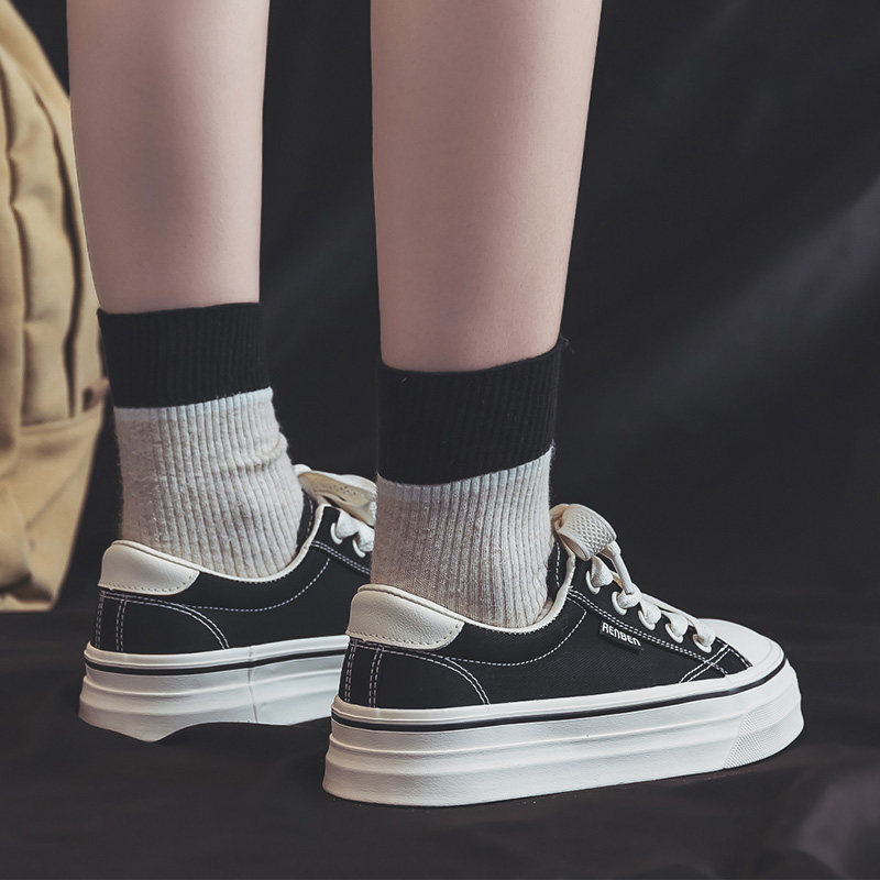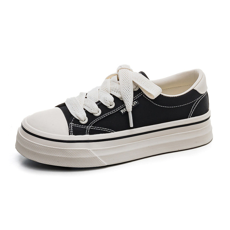 人本帆布鞋女款厚底黑色球鞋2025春秋韩版休闲鞋初中生运动布鞋潮