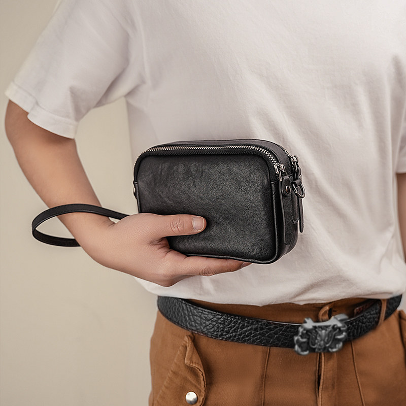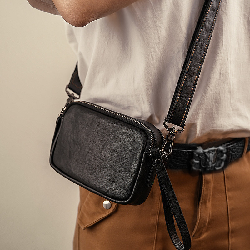 真皮牛皮男士斜挎包新款高级外出小包手机挎包便携通勤男包肩包