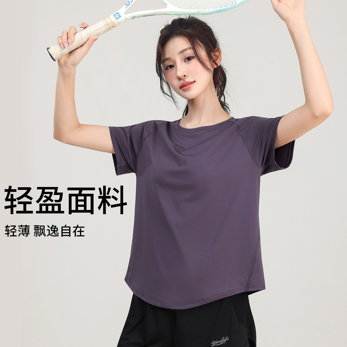大码宽松运动T恤女胖mm速干透气健身服瑜伽短袖夏季跑步上衣200斤