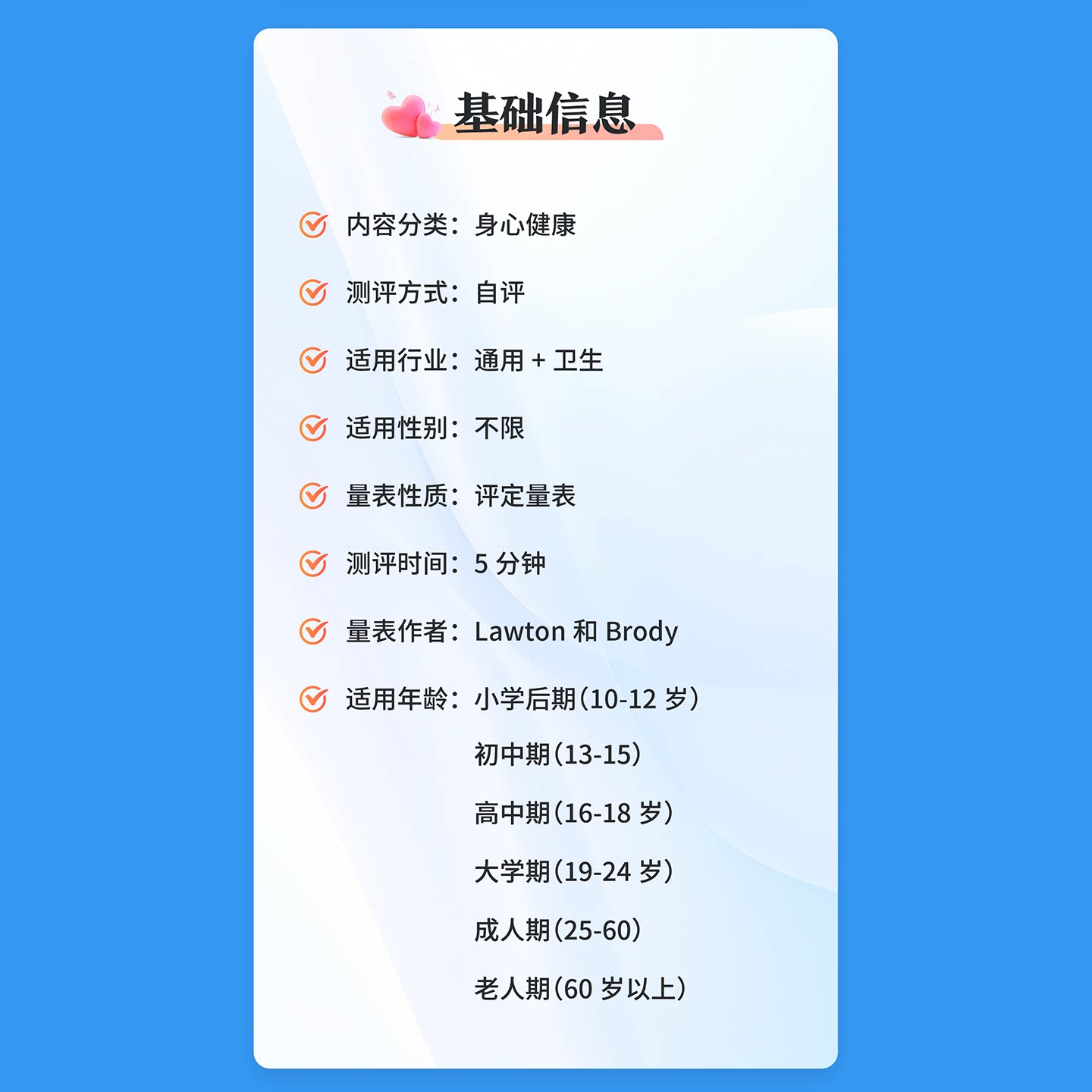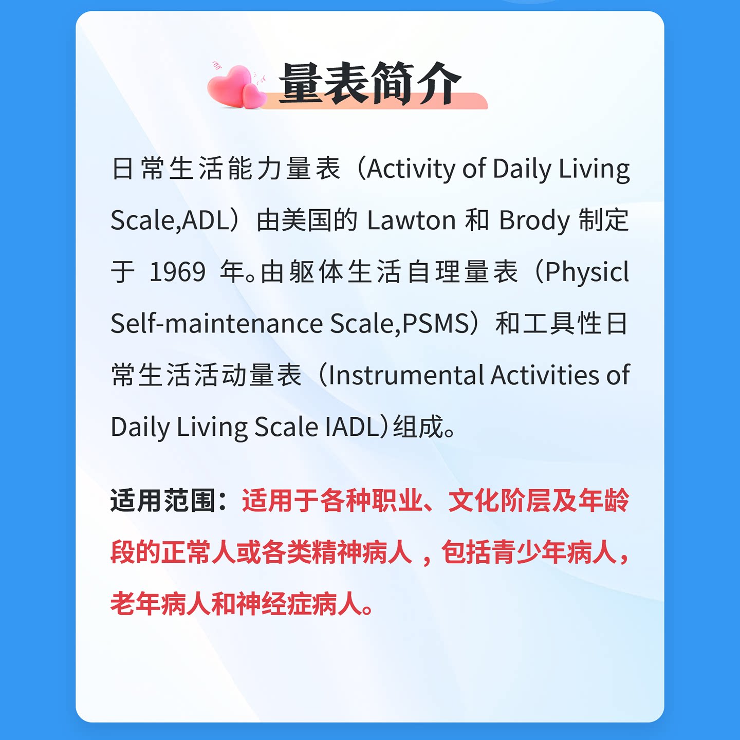 日常生活能力量表(ADL)智能心理测评工具性日常生活质量活动量表