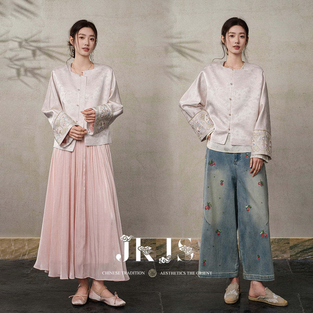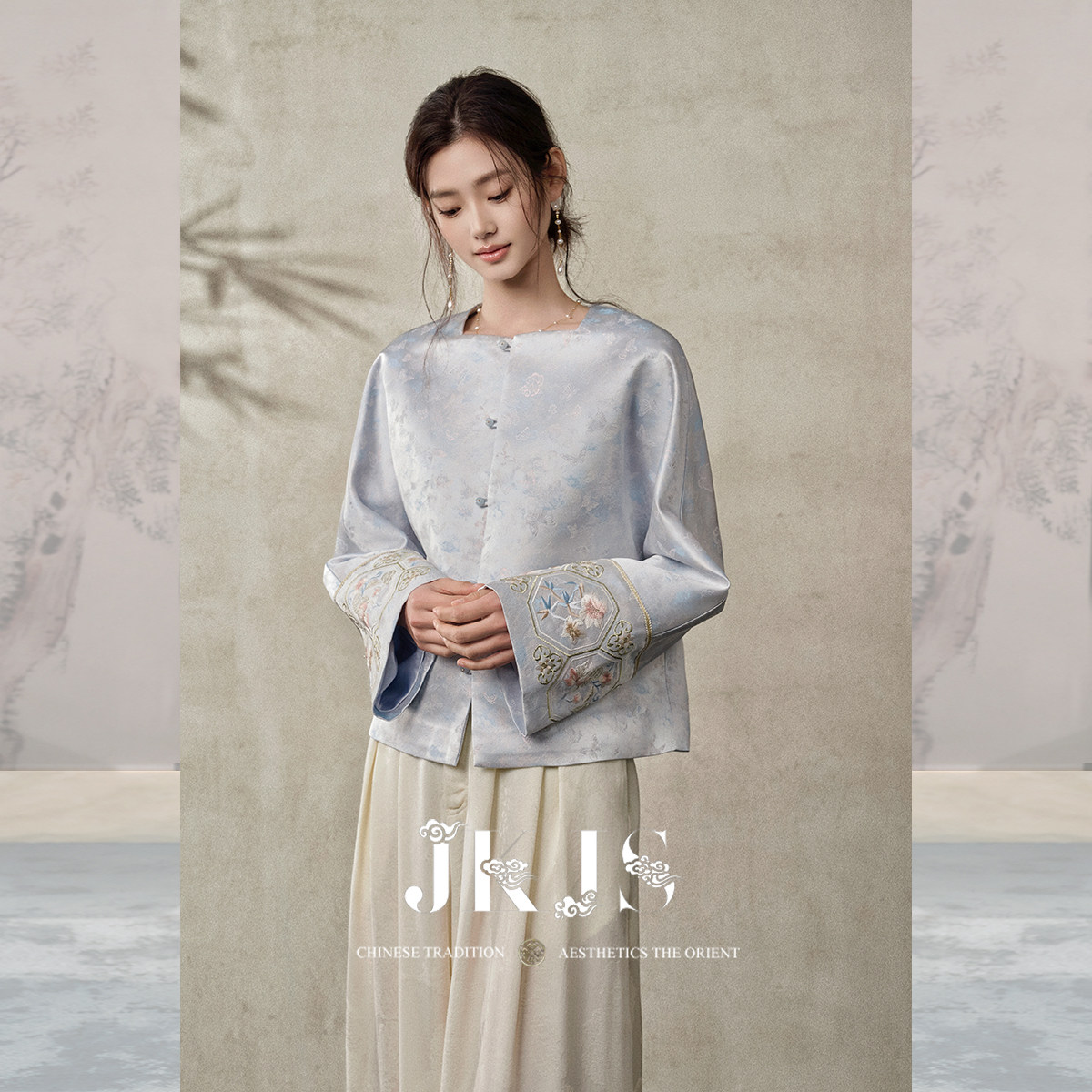 JKJS【素纨】新中式外套女款春季气质高级感洋气短款方领小众上衣