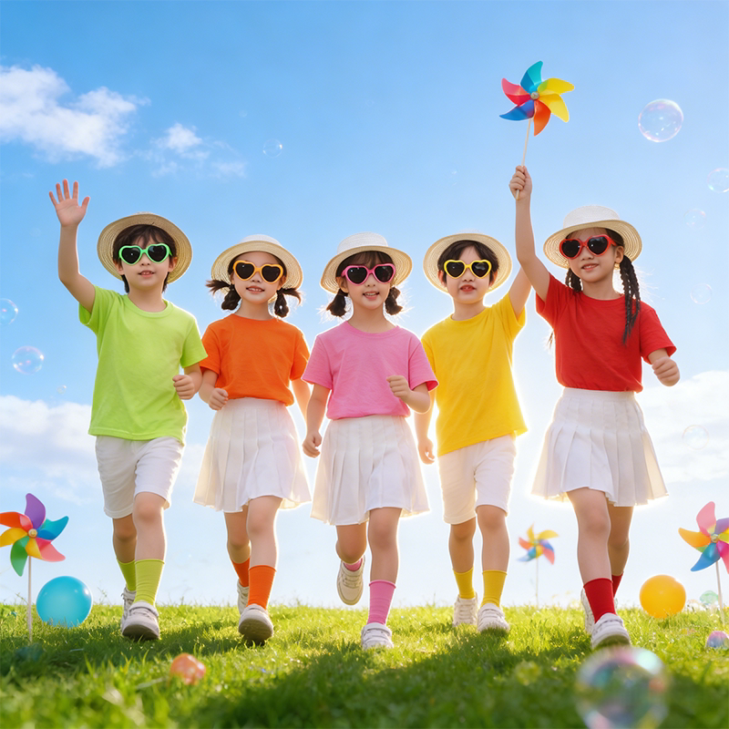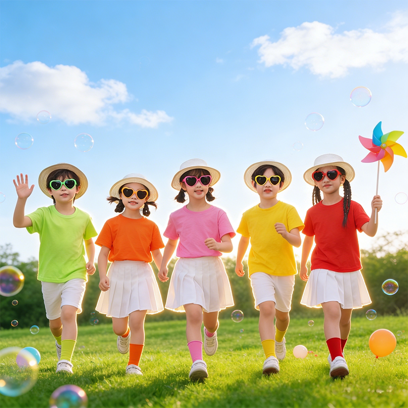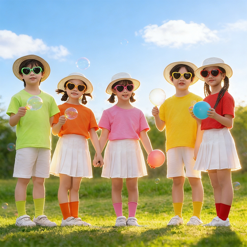 多巴胺儿童彩色短袖女童纯棉t恤衫糖果色上衣短裤套装纯色亲子装