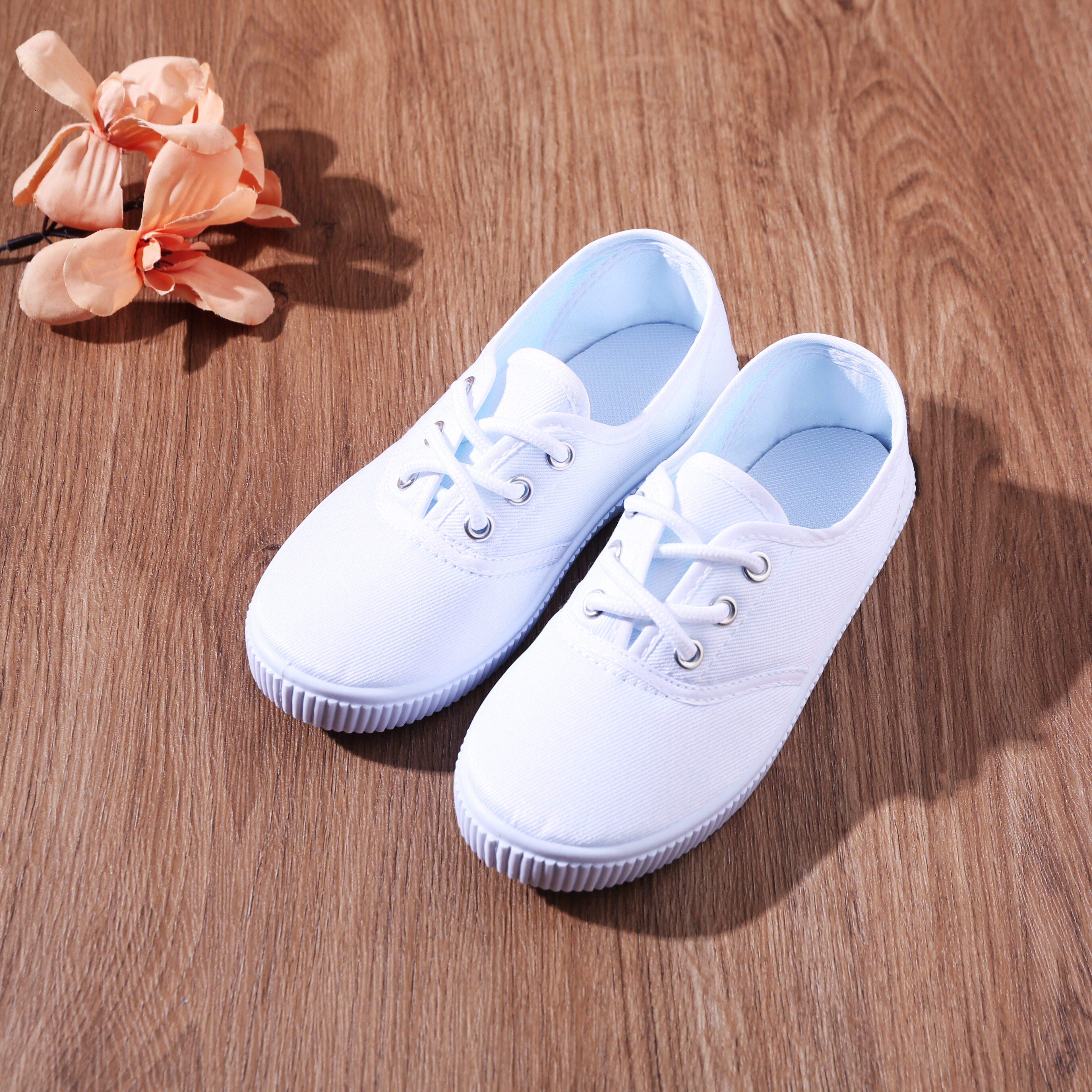 儿童小白鞋男童女童白布鞋92款六一演出透气系鞋带帆布鞋校园软底