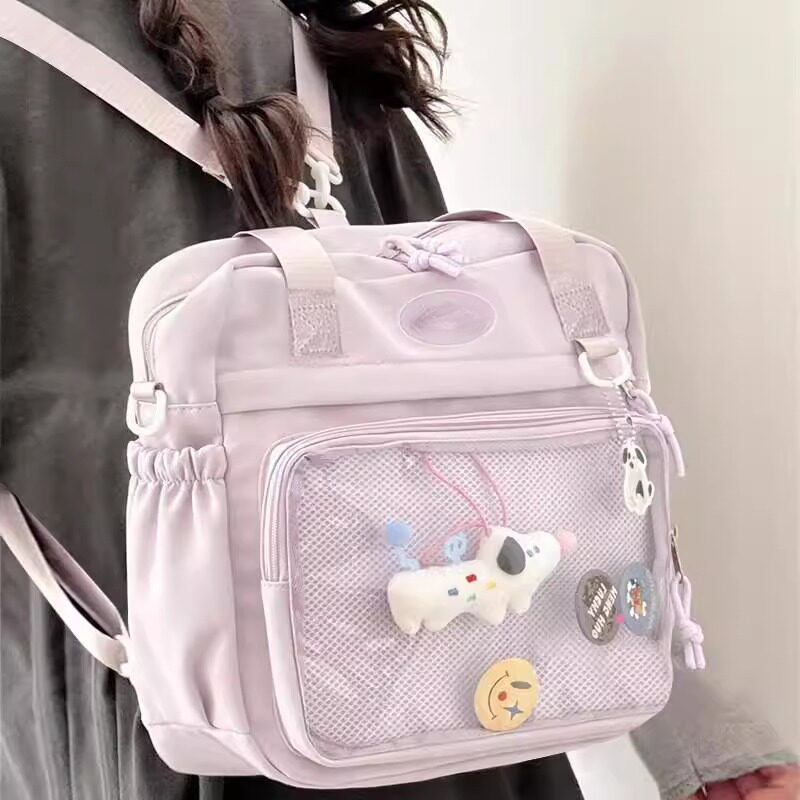 日系手提托特痛包女大容量学生党双肩斜挎两用包可爱吧唧谷子娃包