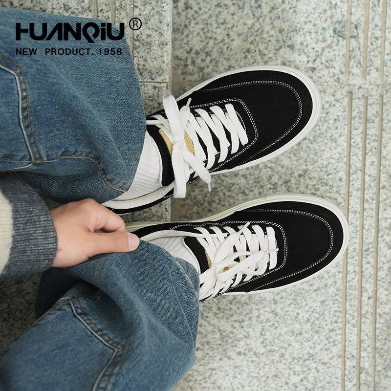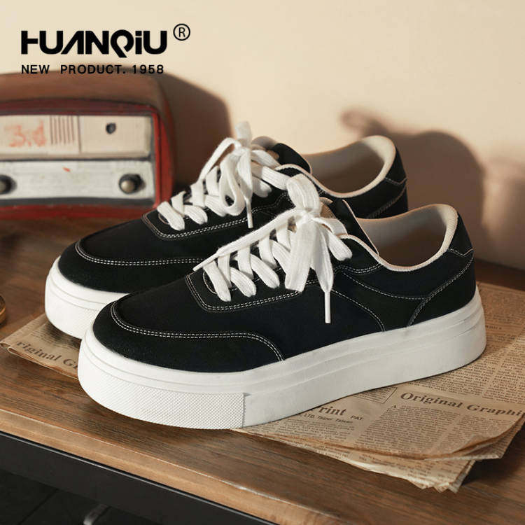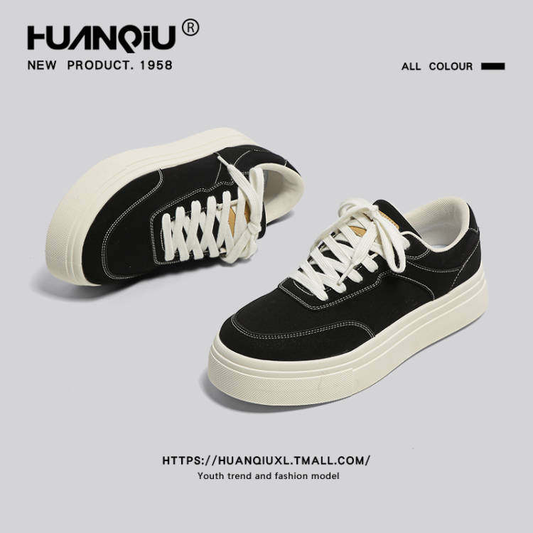 环球帆布鞋男款青春潮流透气厚底增高软底黑色青少年低帮休闲板鞋