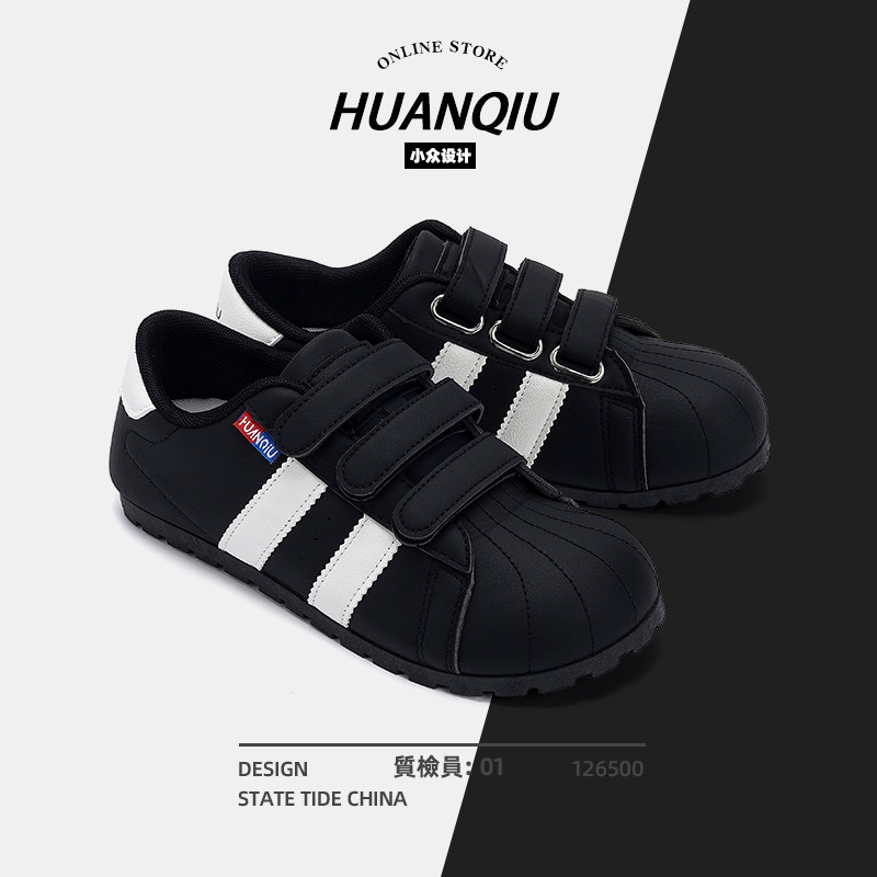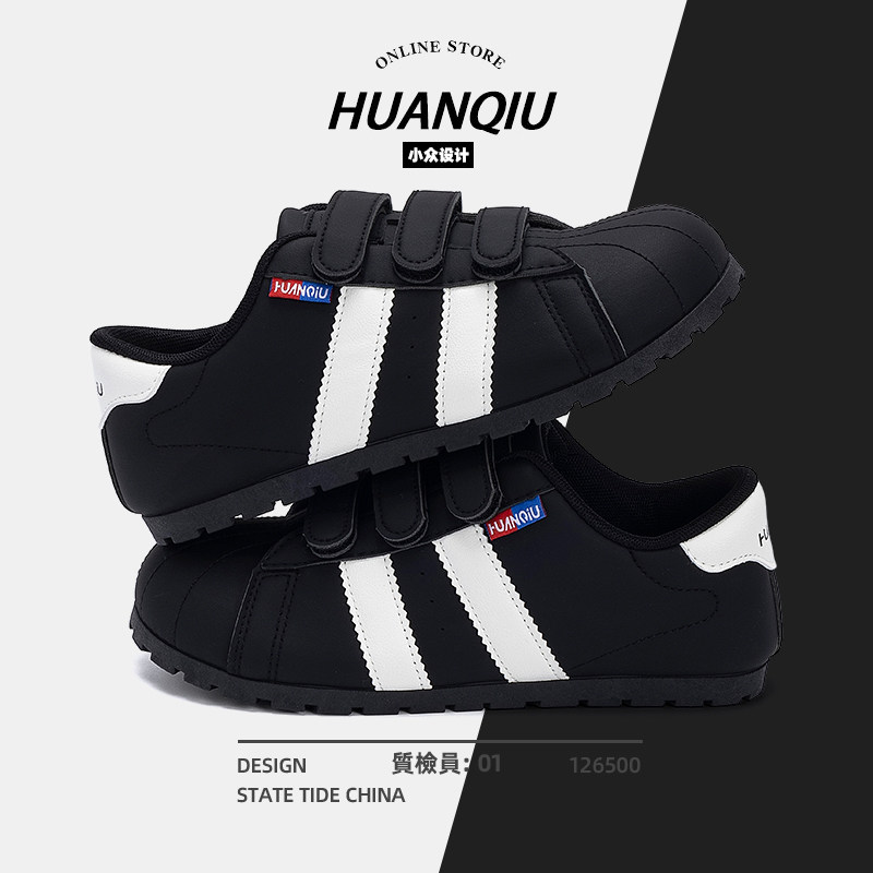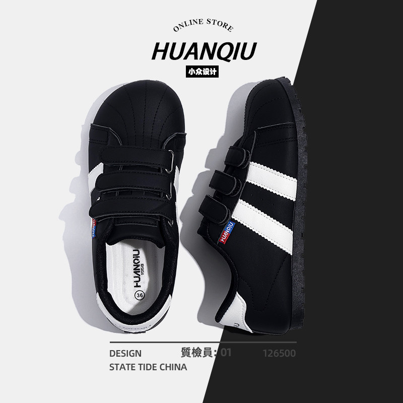 环球黑色德训鞋女款2025新款夏季透气百搭休闲鞋子女魔术贴女鞋潮