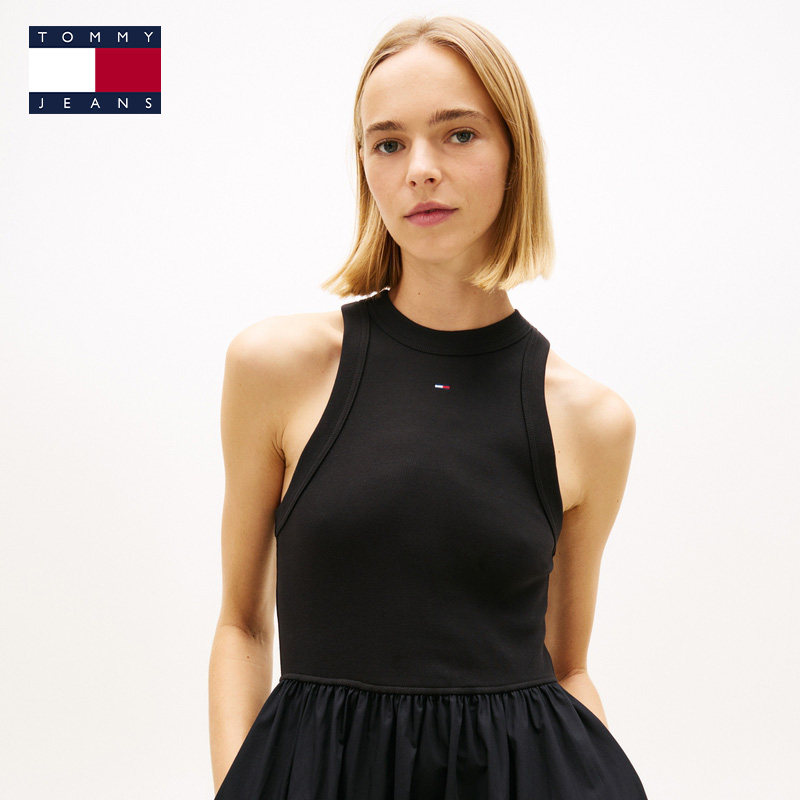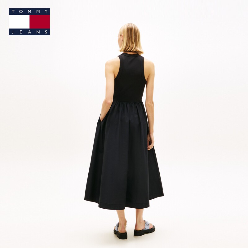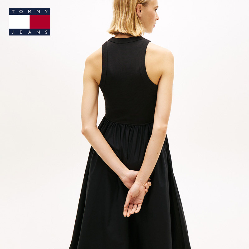 Tommy26春夏新款女装府绸拼接气质优雅修身显瘦无袖背心连衣裙