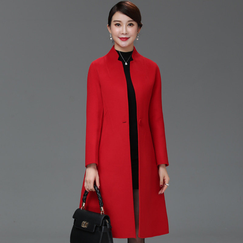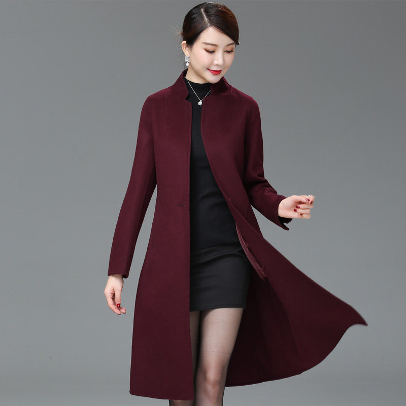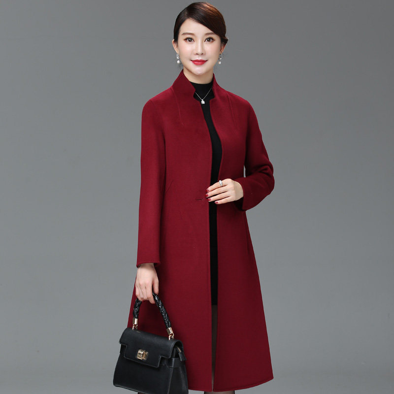 妈妈双面羊绒大衣女中长款2025秋冬韩版立领小个子羊毛呢外套中年