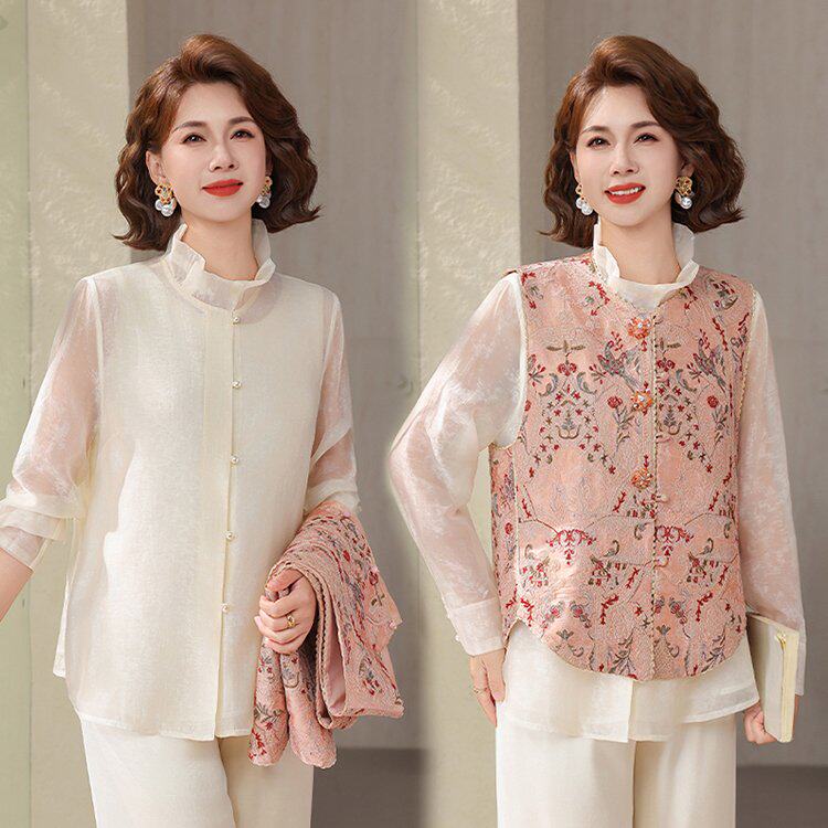 2026春夏新款国风衬衣马甲两件套女春款重工刺绣中式坎肩无袖马甲