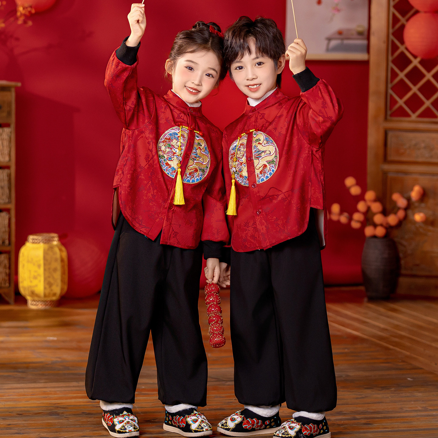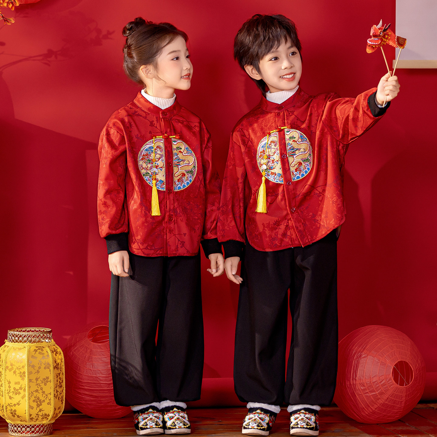 男童唐装冬季新中式国风小少爷汉服过年喜庆拜年服男宝宝新年衣服