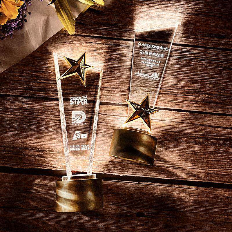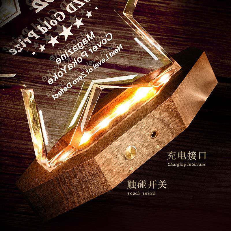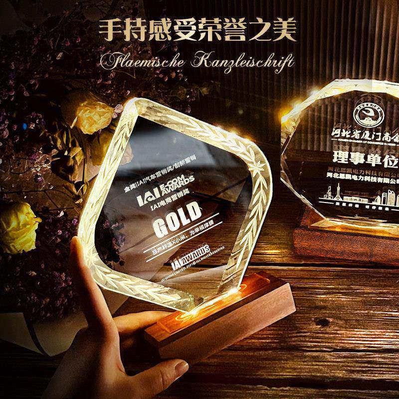 发光水晶奖杯定制做创意周年会冠军实木奖牌刻字优秀员工奖杯订制