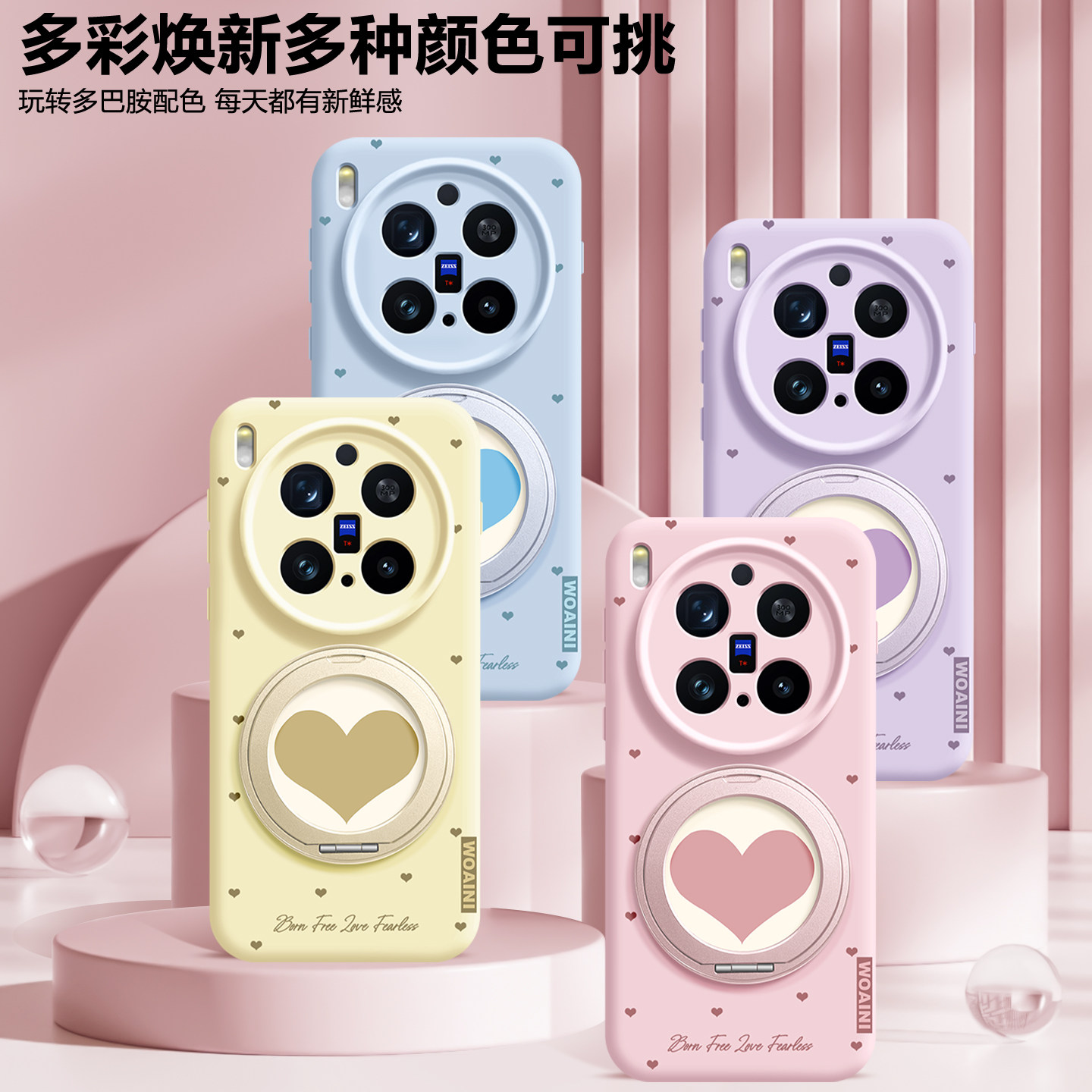 多巴胺爱心沃艾尼适用vivox300手机壳带支架x300pro新款X200promini好看女x100s液态硅胶360全包VOX薄ultra秋