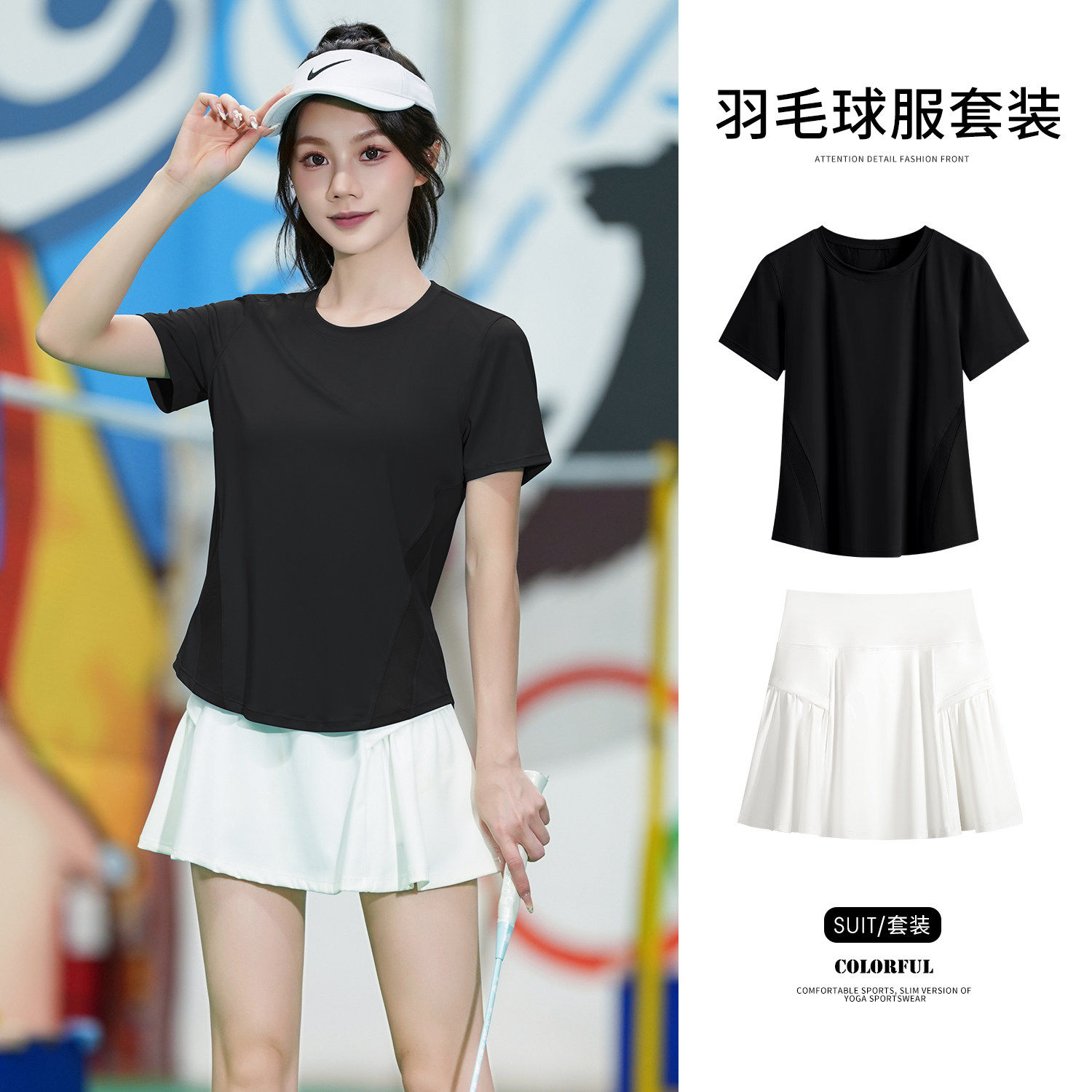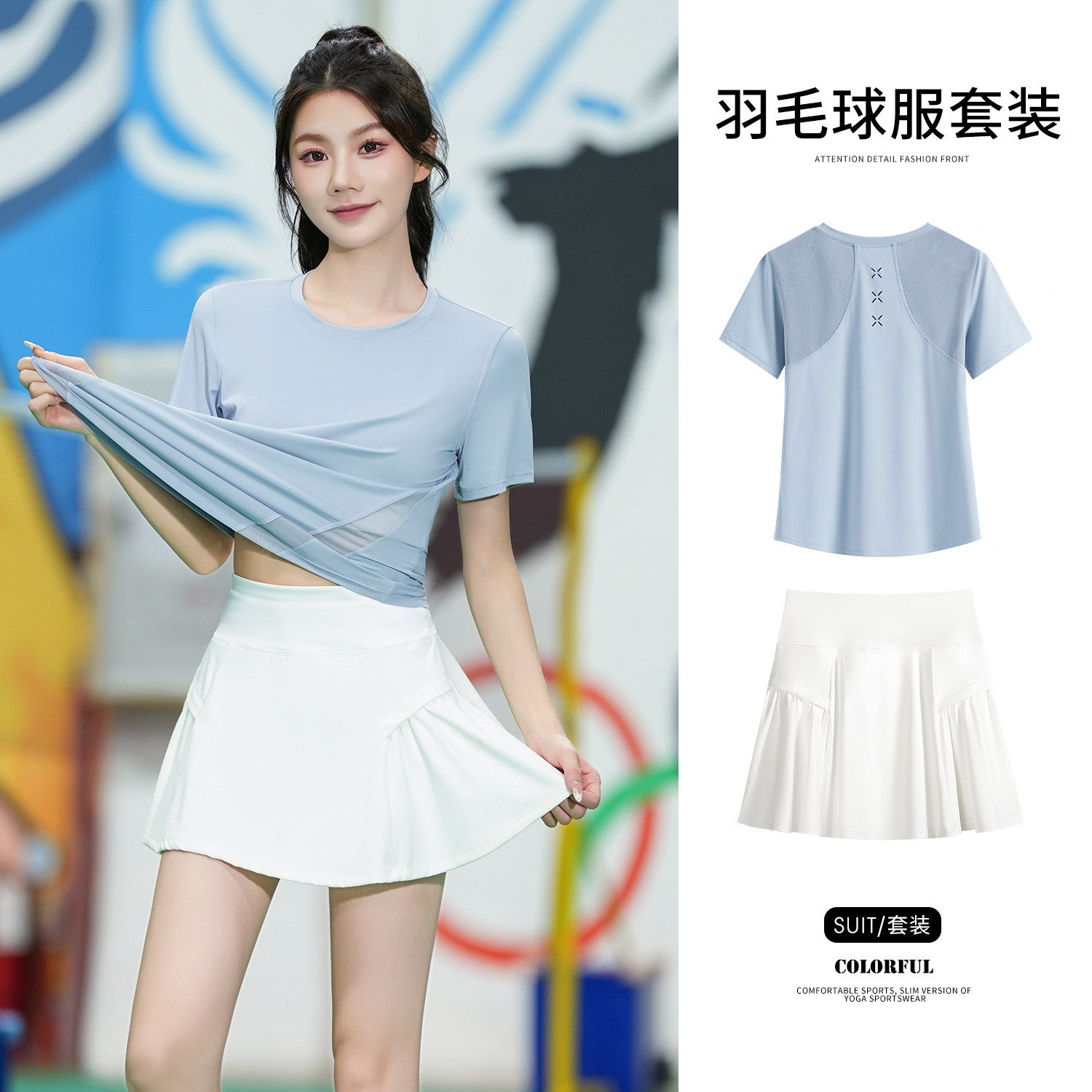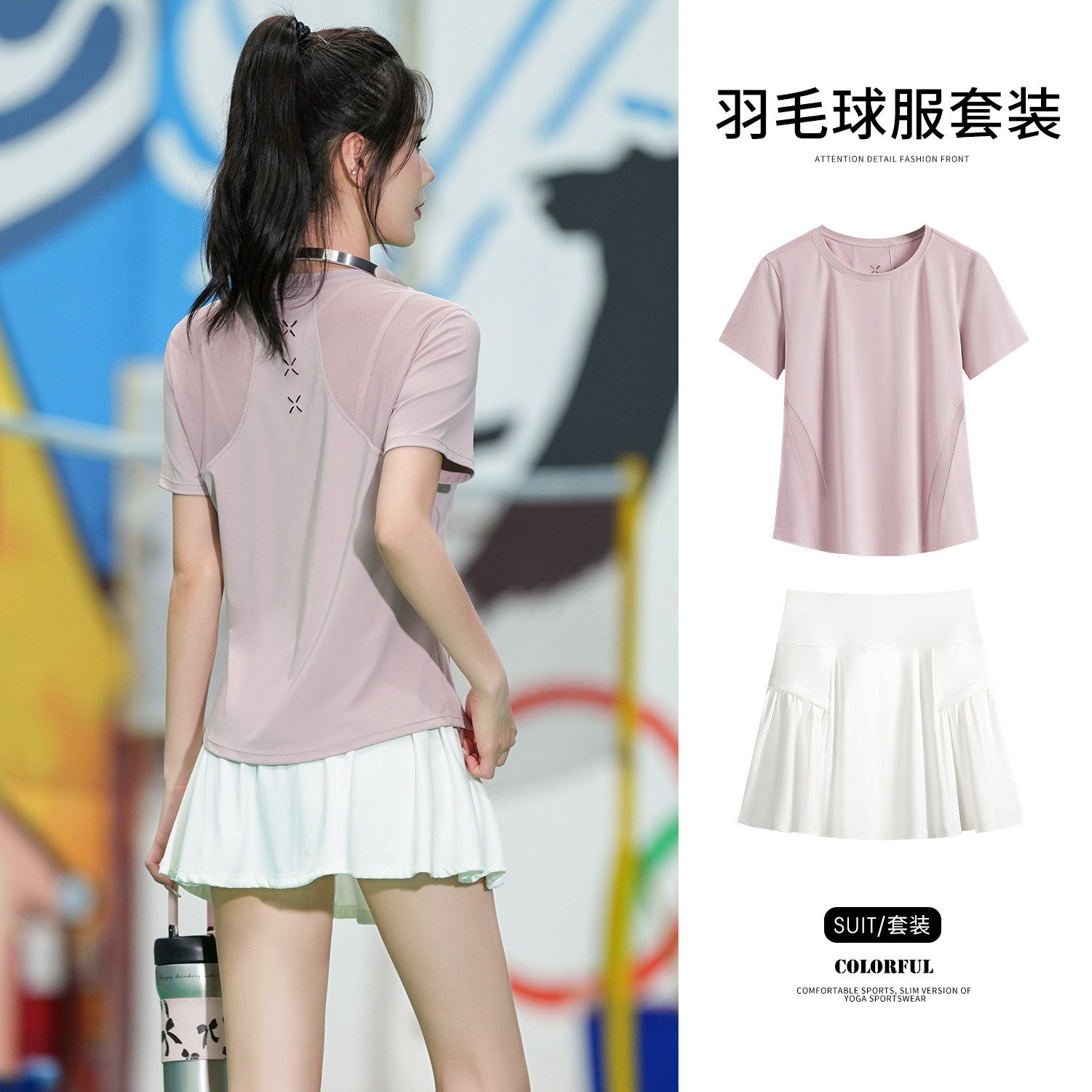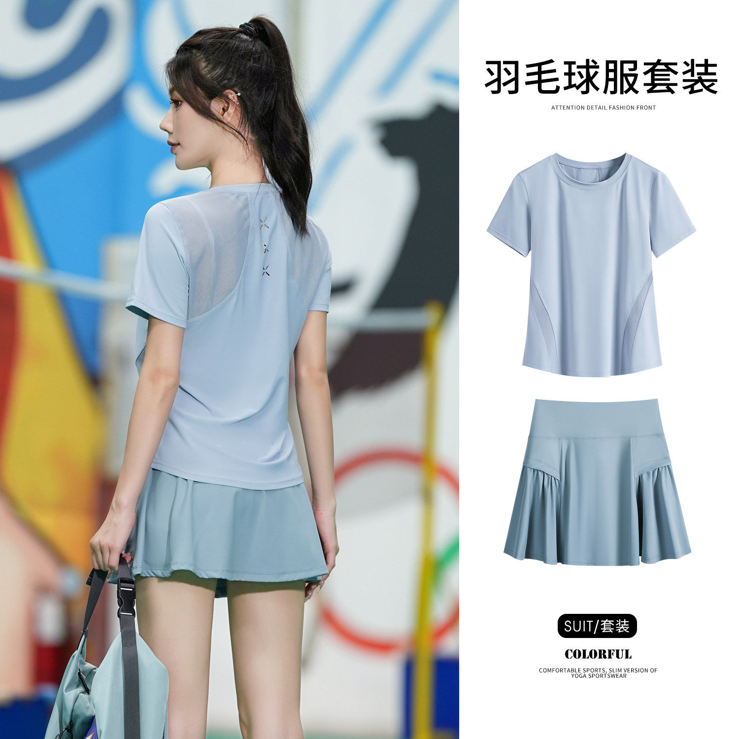 马孔多官方羽毛球运动套装女夏季新款网纱透气速干衣专业网球服训
