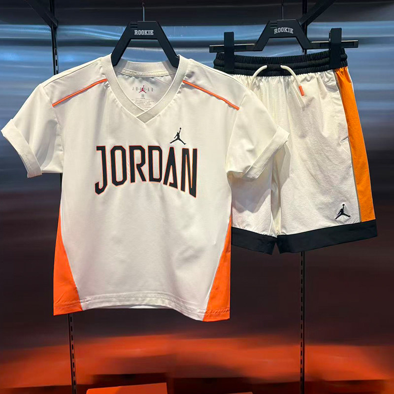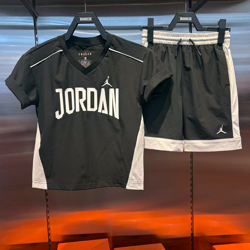 JORDAN乔丹儿童V领短袖26年夏男女童舒适运动速干T恤JD2622007