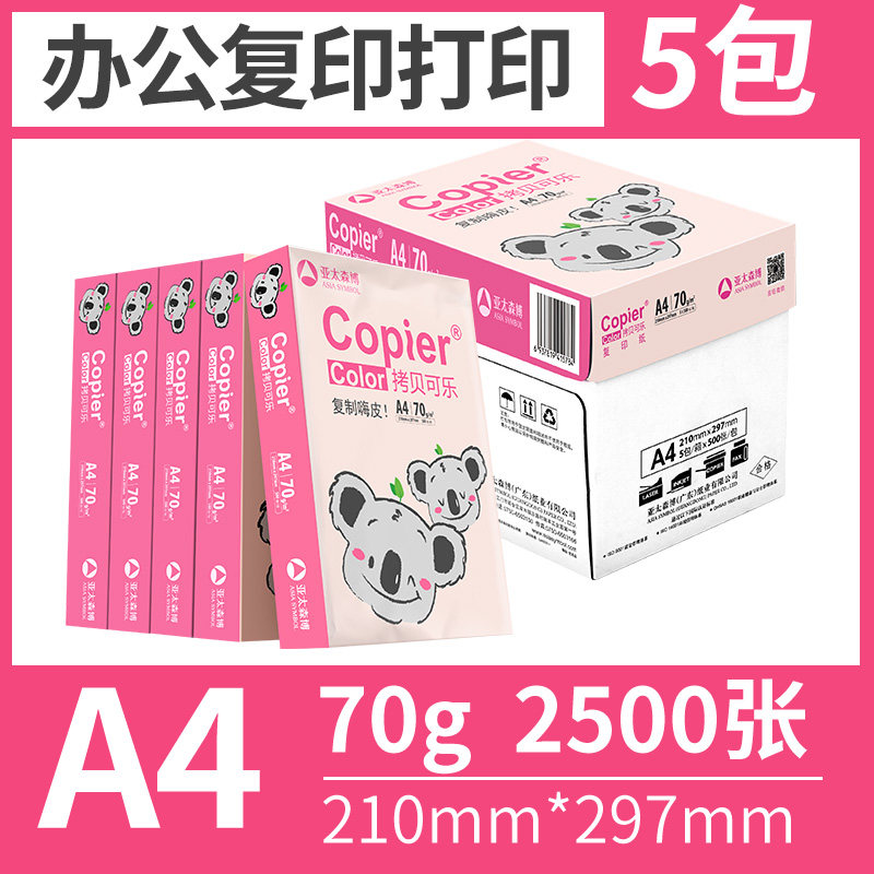 亚太森博粉考拉a4纸70g整箱双面打印纸80g复印纸绿考拉白纸草稿纸