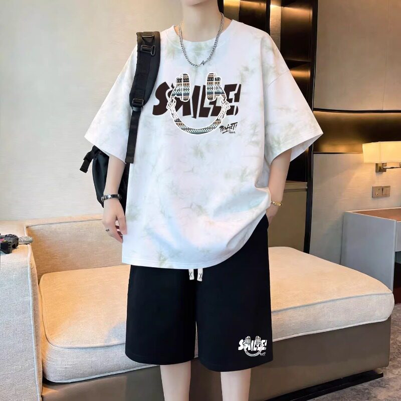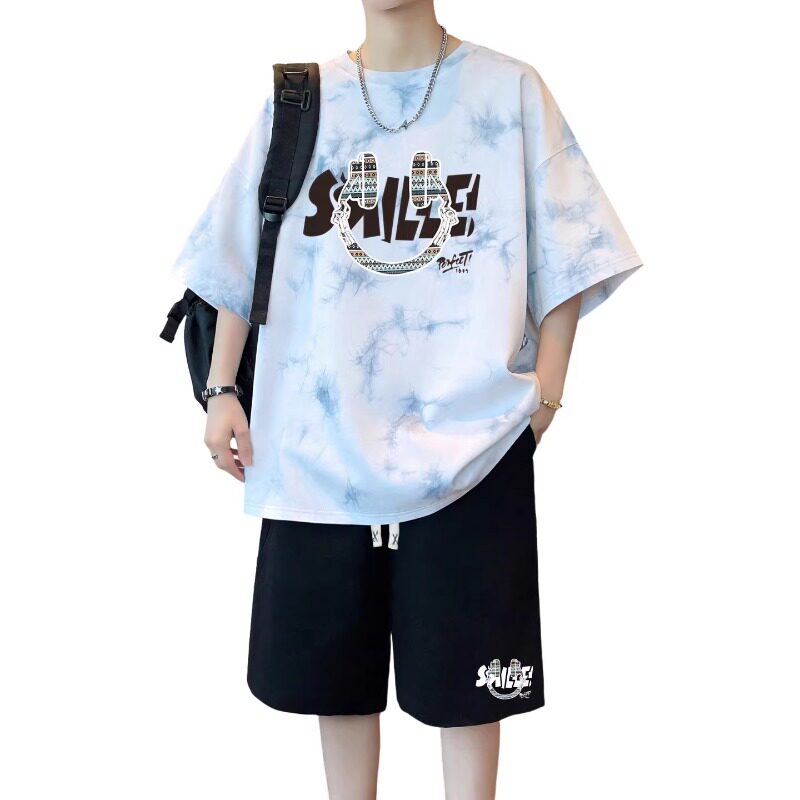 青少年夏装纯棉半袖t恤男孩初中高中学生大童帅气短袖运动服套装