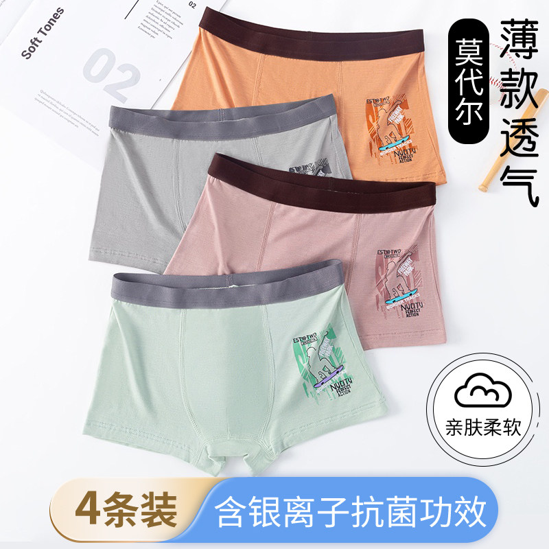 男童内裤莫代尔儿童内裤男平角中大童青少年冰丝四角薄款短裤5-18
