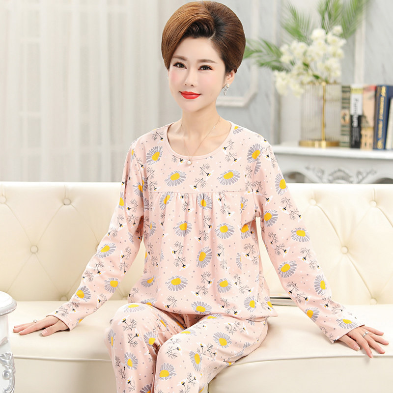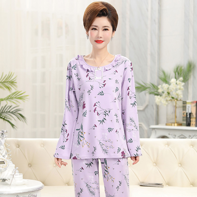 睡衣女秋冬新品长袖长裤纯棉女款中老年妈妈家居服套头印花起居服