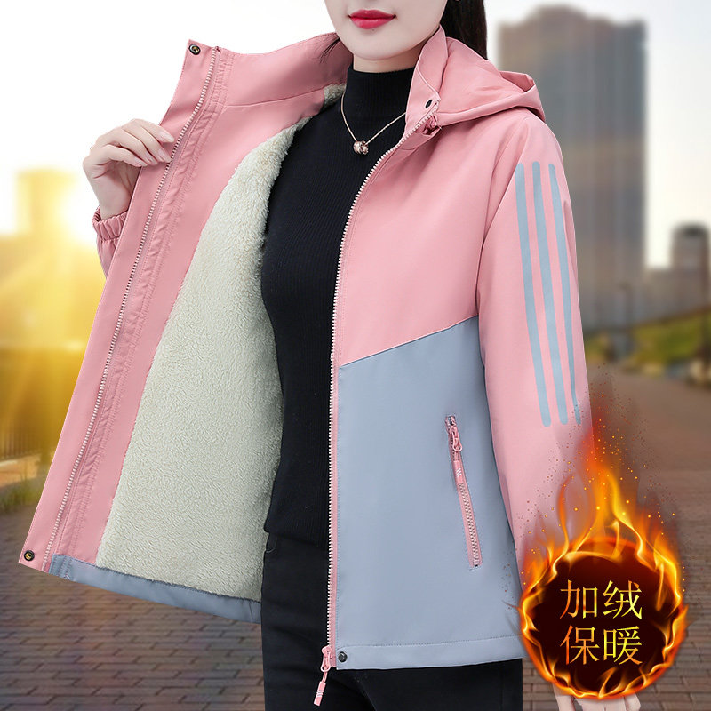 户外冲锋衣女款冬季加绒加厚2026新款爆款中年妈妈短款秋冬款外套