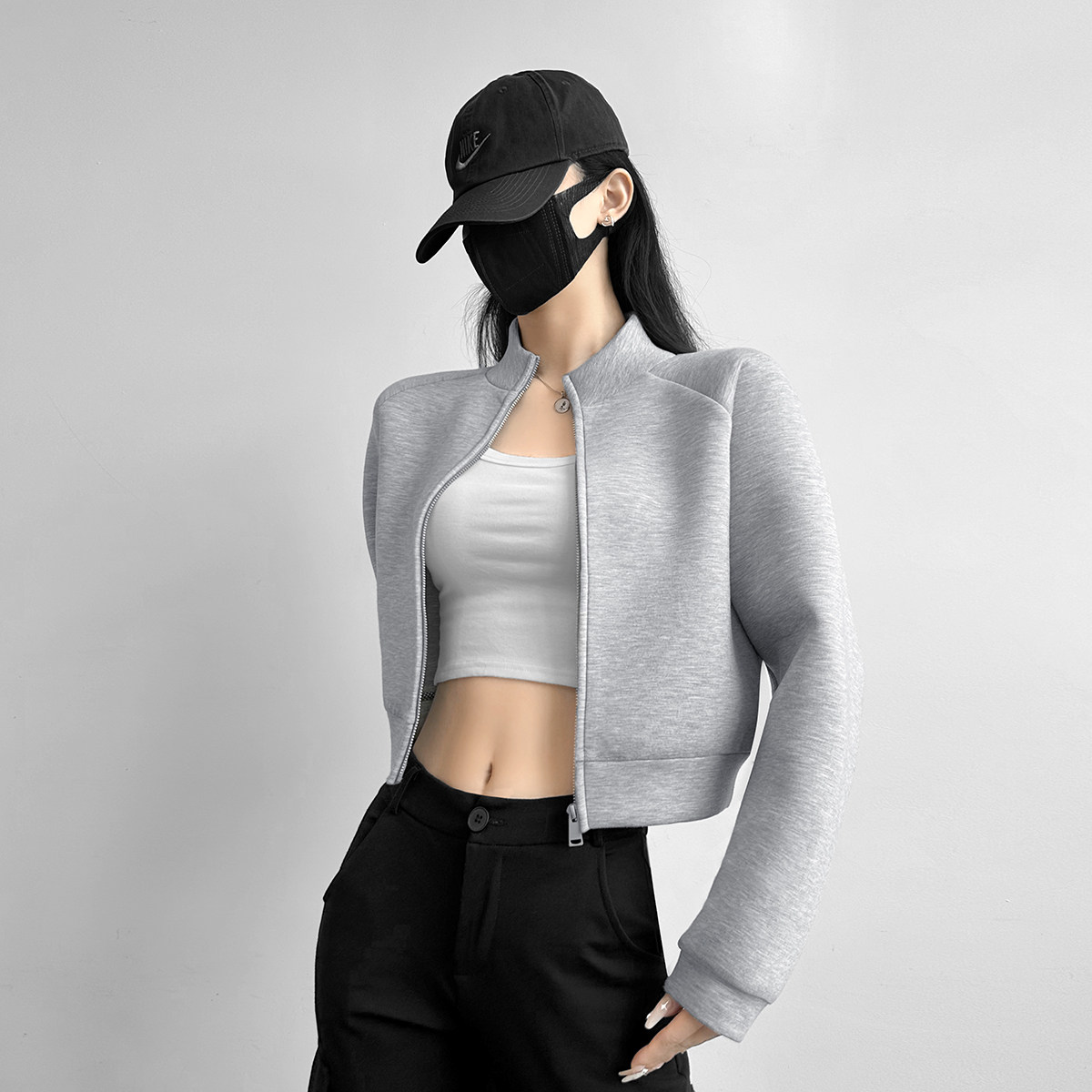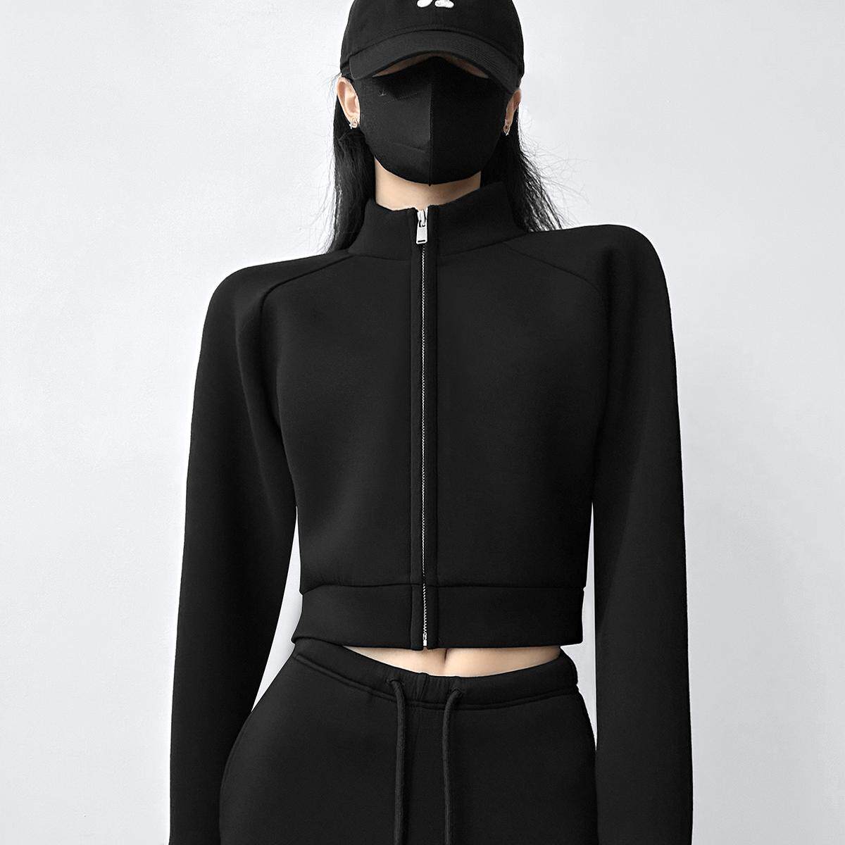 唐造新款2026秋冬款连帽厚外套女款高档立领太空层短款美式卫衣