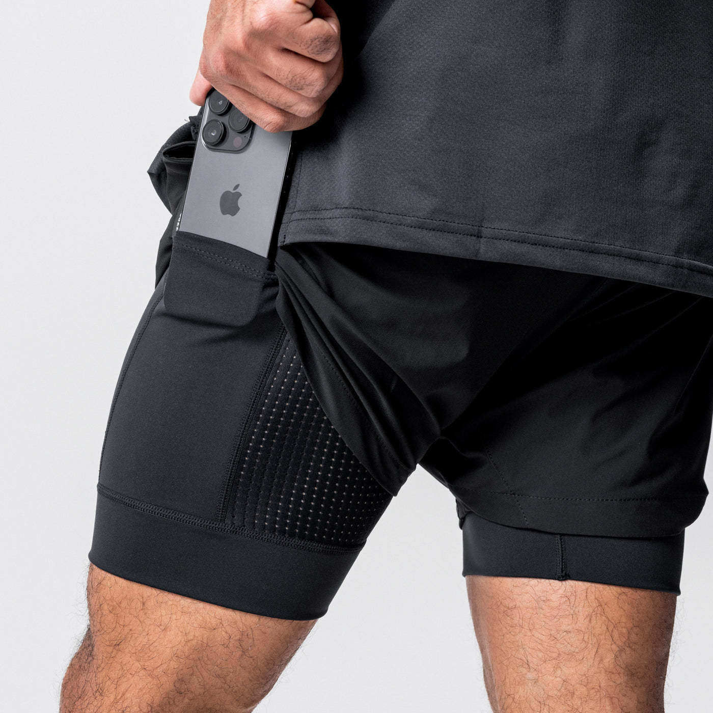 假两件运动裤三分短裤男款夏季速干内衬美式健身弹力深蹲四分裤