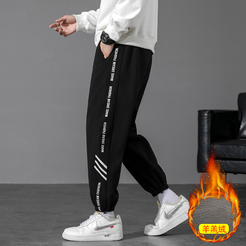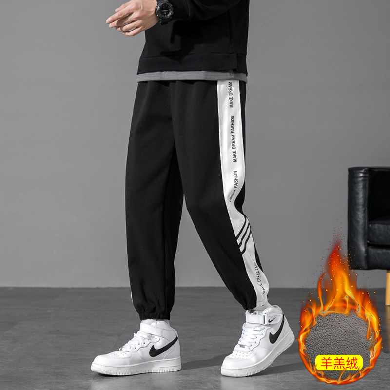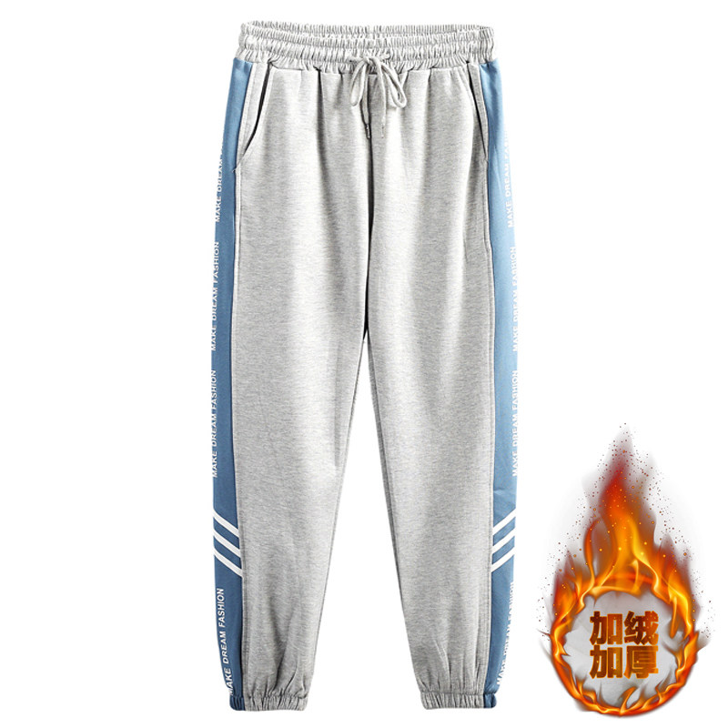青少年加绒运动卫裤男士春秋冬季纯棉休闲裤子学生新款束脚裤潮流