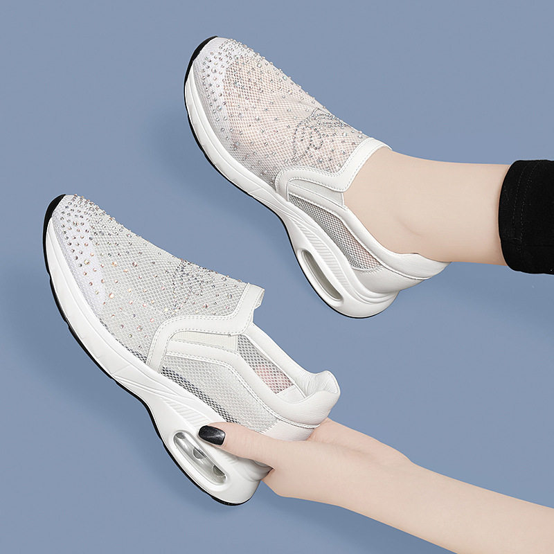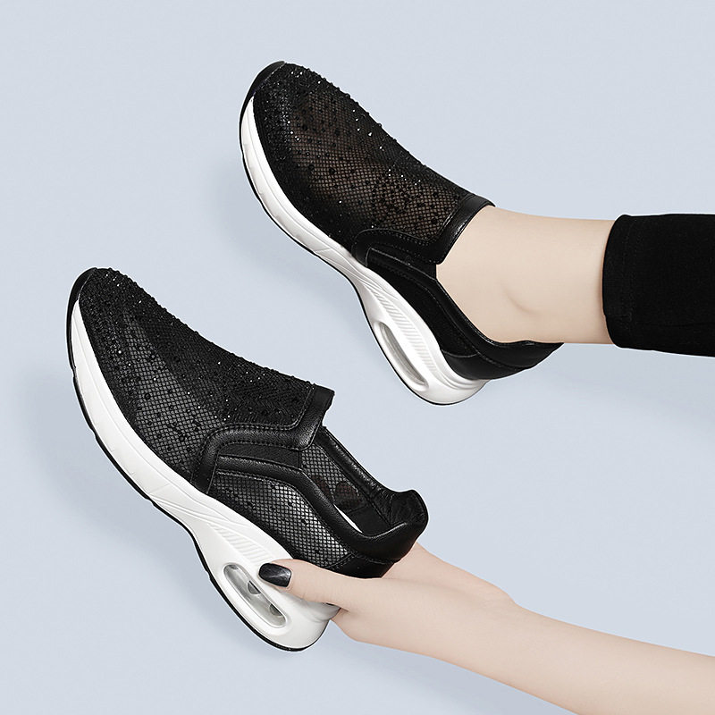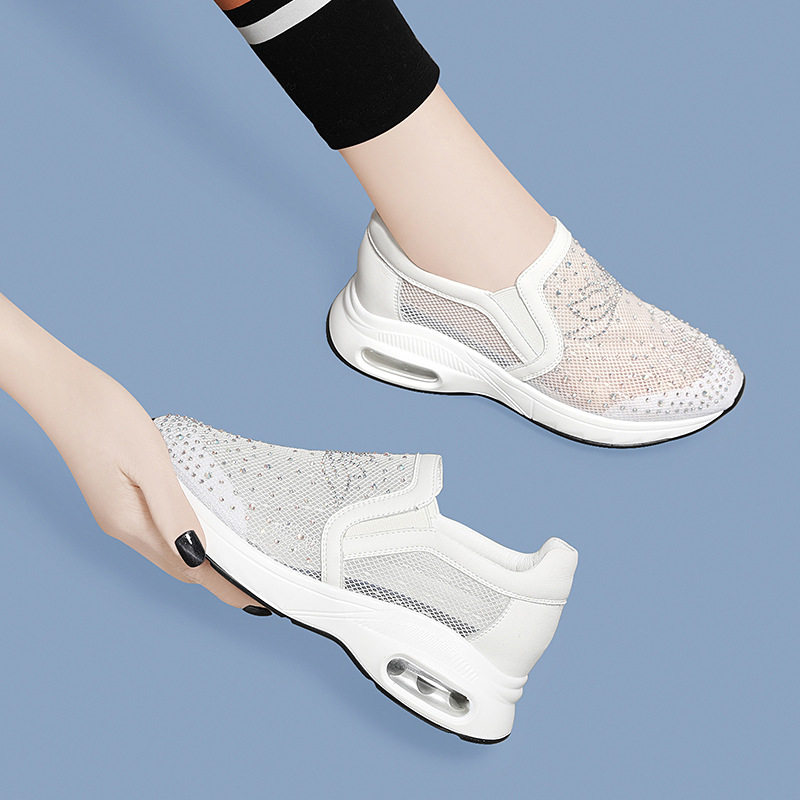 内增高休闲鞋2024春夏新款黑色气垫鞋网鞋透气网面懒人一脚蹬女鞋