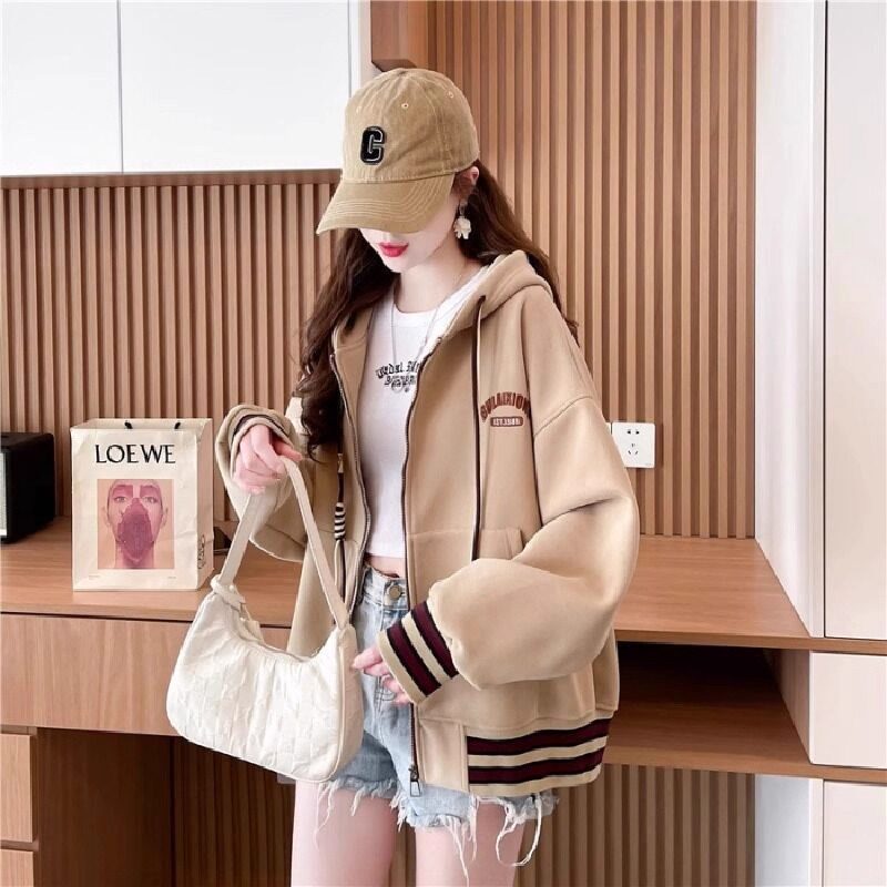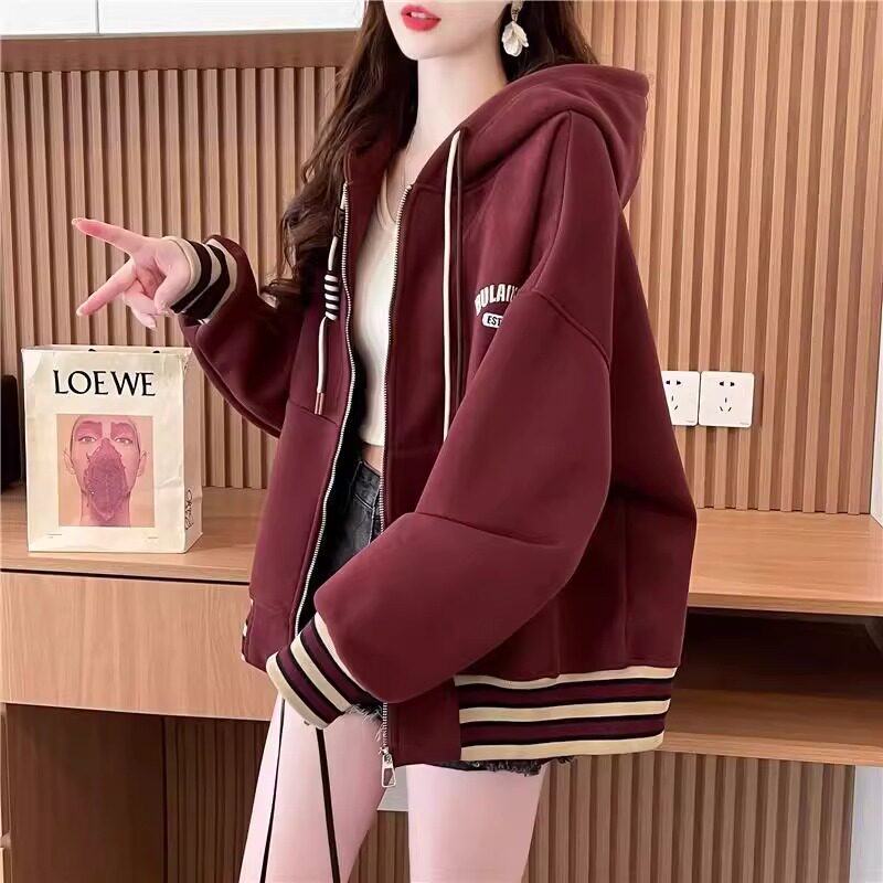 外套女2025新款秋冬卫衣连帽棒球服加绒加厚宽松高级感超好看开衫