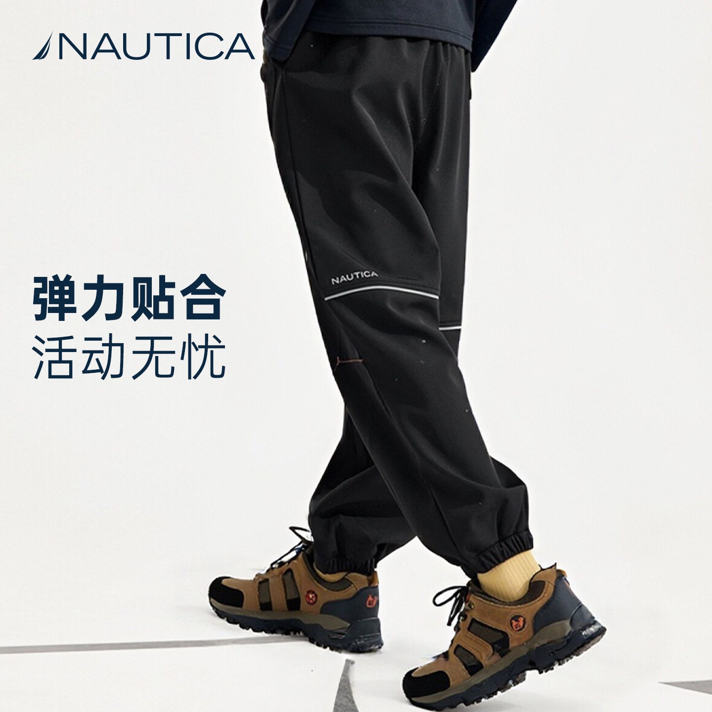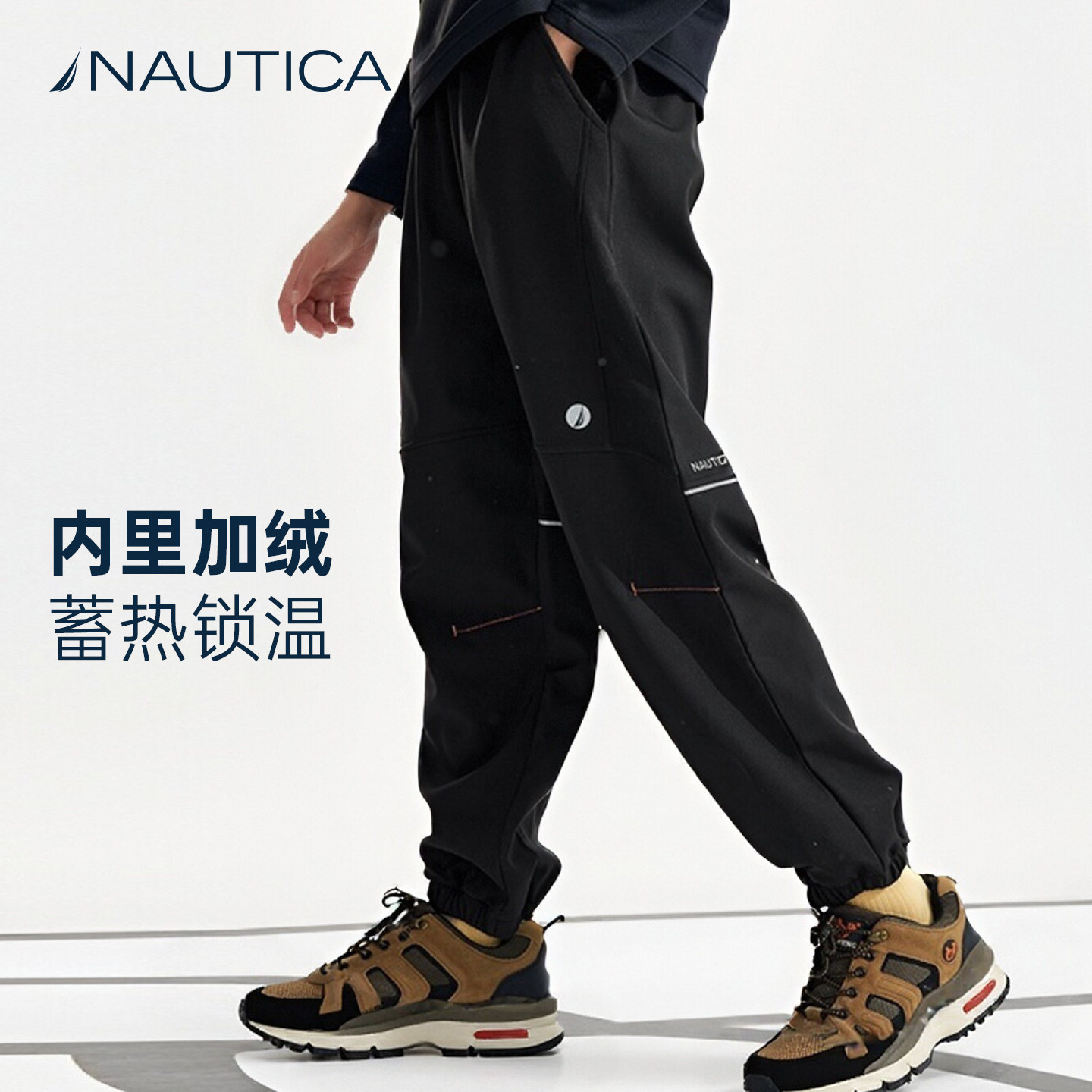 NAUTICA儿童加绒裤子运动裤男童女童冬防风加厚大童青少年冲锋裤