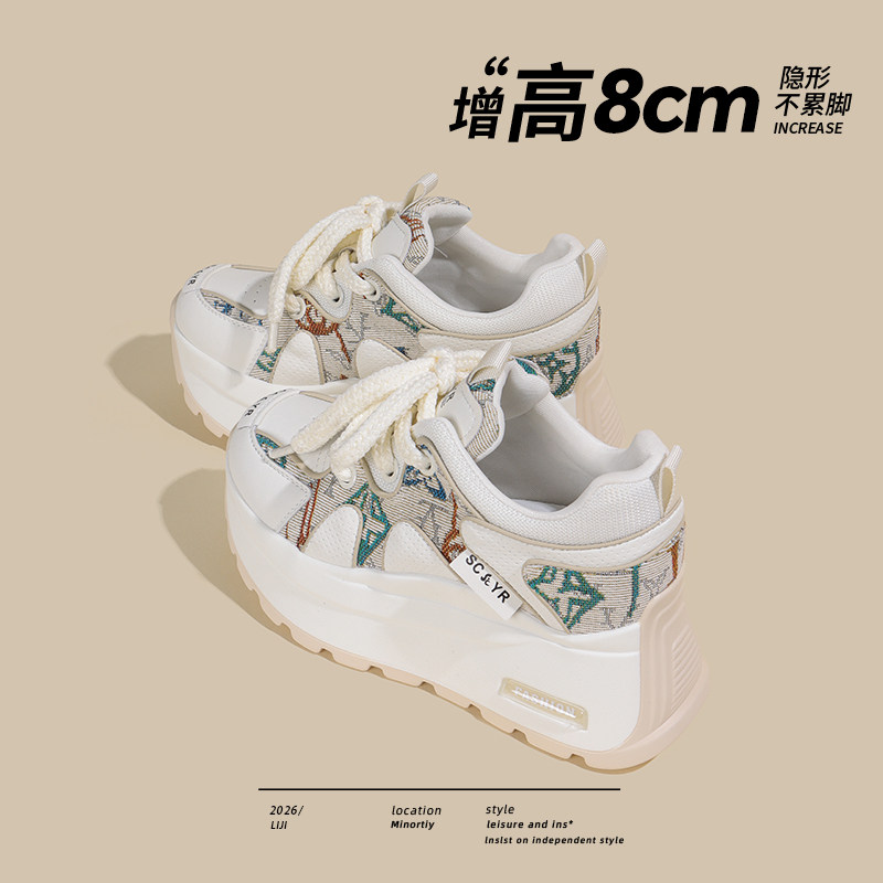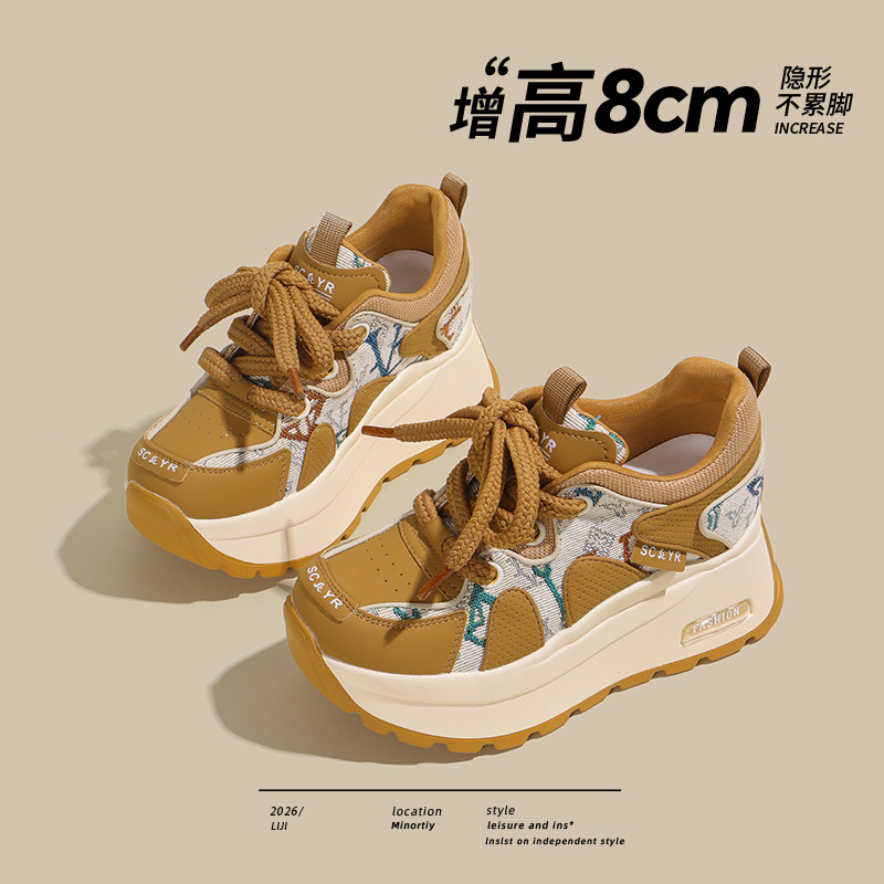 复古8CM松糕厚底德训鞋女2026春秋新款休闲时尚小个子内增高女鞋
