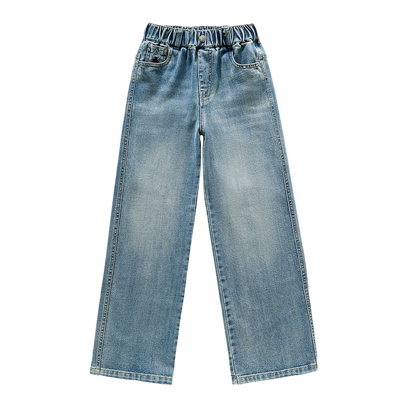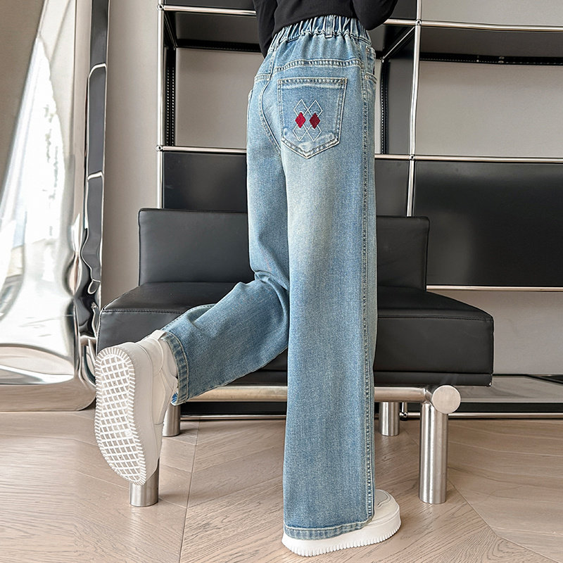 女童裤子春夏薄款外穿2026新款女孩洋气绣花窄版直筒裤儿童牛仔裤