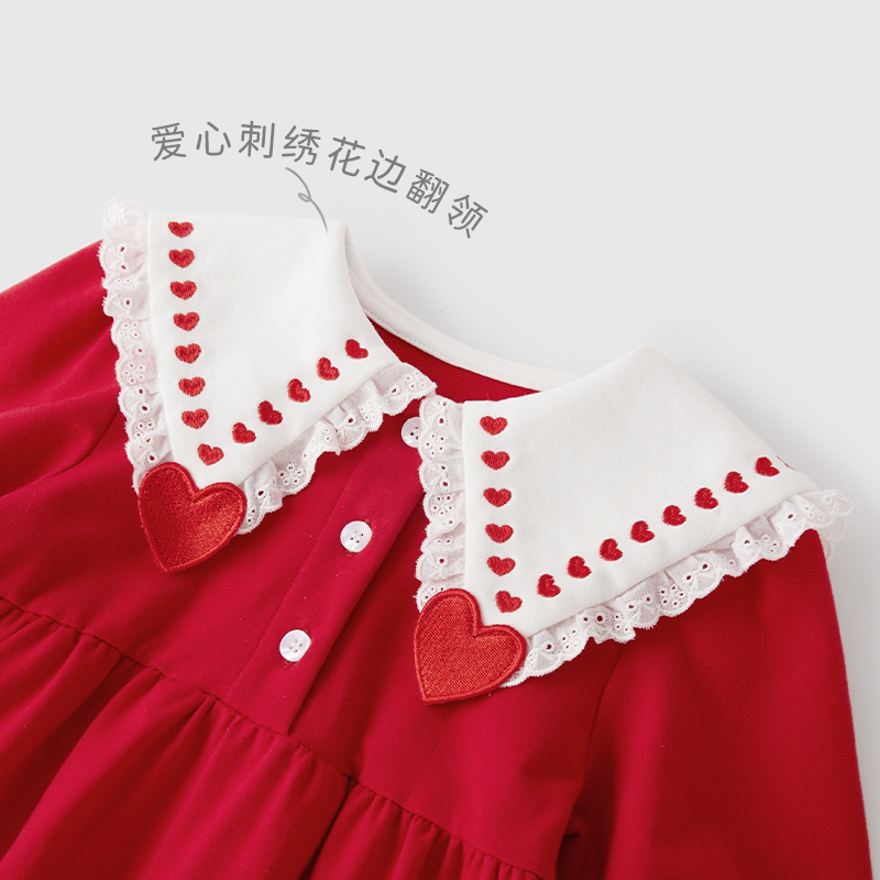 女童红色连衣裙2026大童公主裙儿童生日裙子春秋宝宝周岁春装女宝