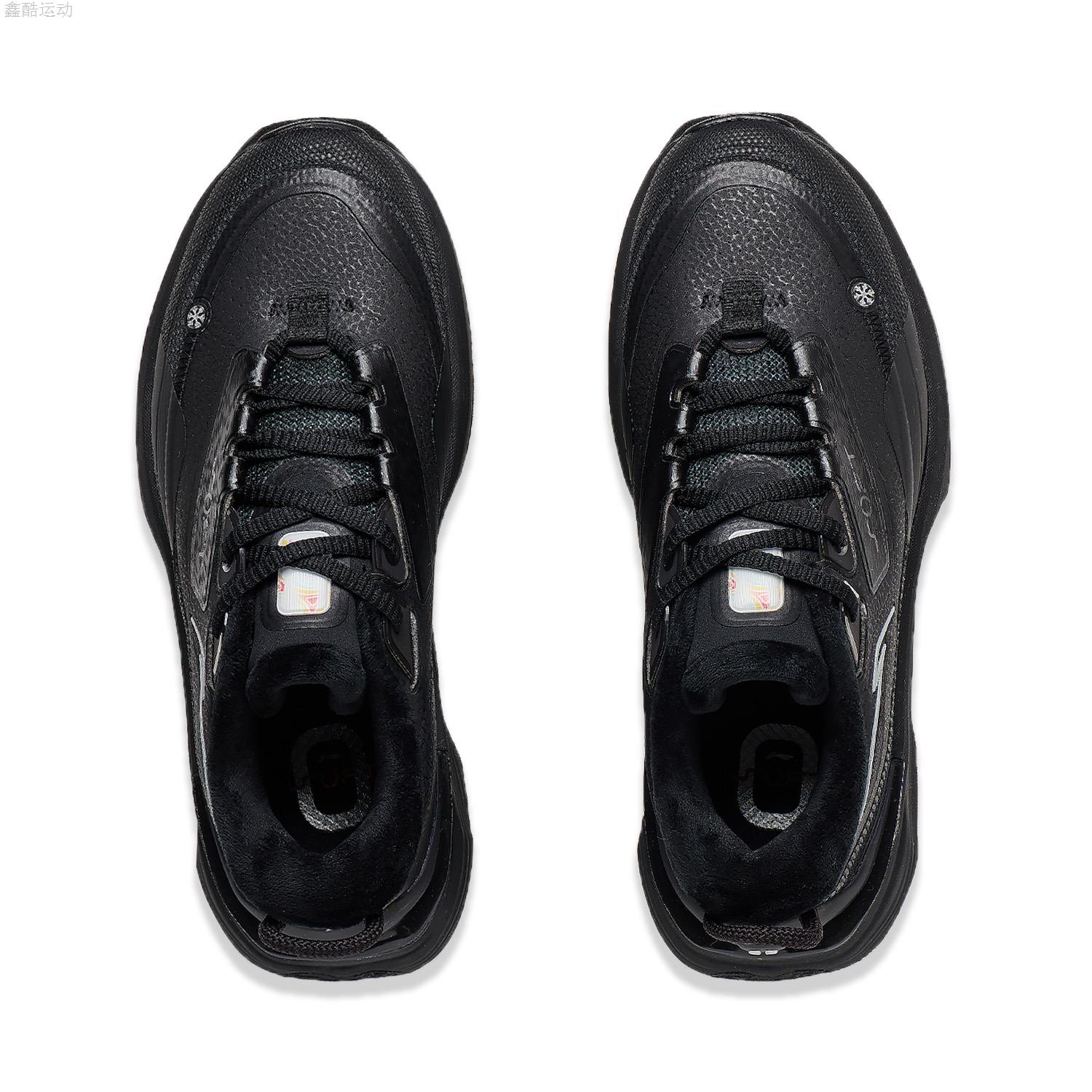 李宁女鞋冬款加绒保暖棉鞋皮面防风防水软底运动鞋黑色百搭休闲鞋