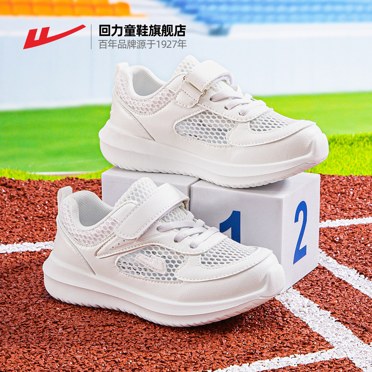 回力男童小白鞋2026春夏新款女童单网鞋子白色运动鞋透气儿童网鞋