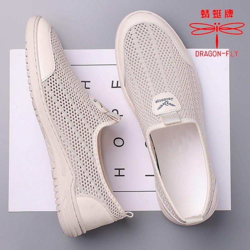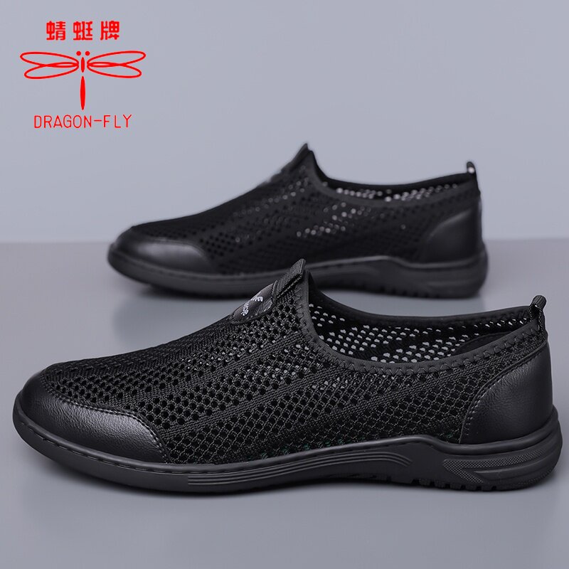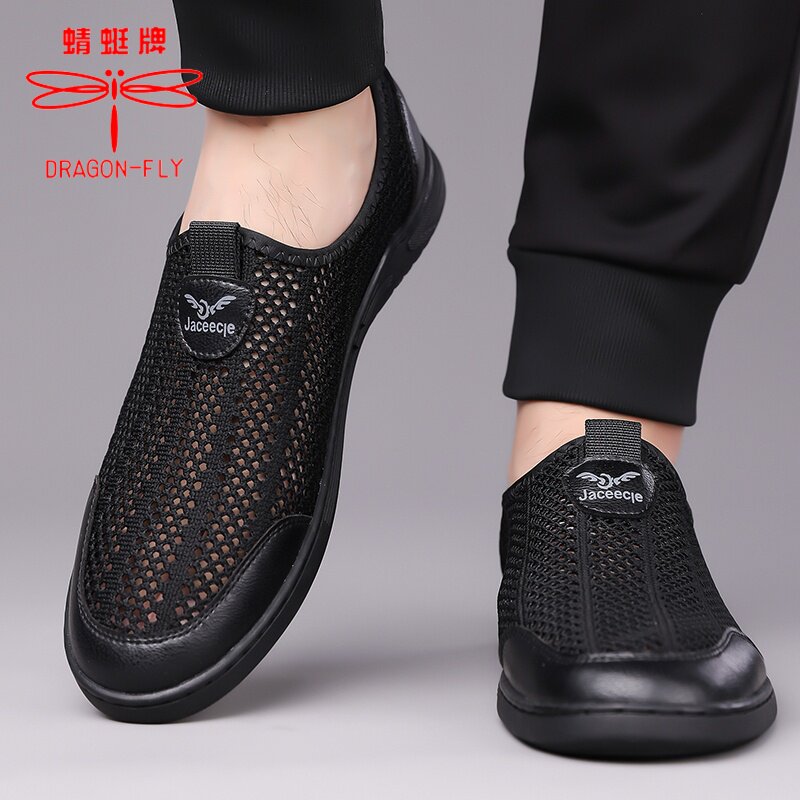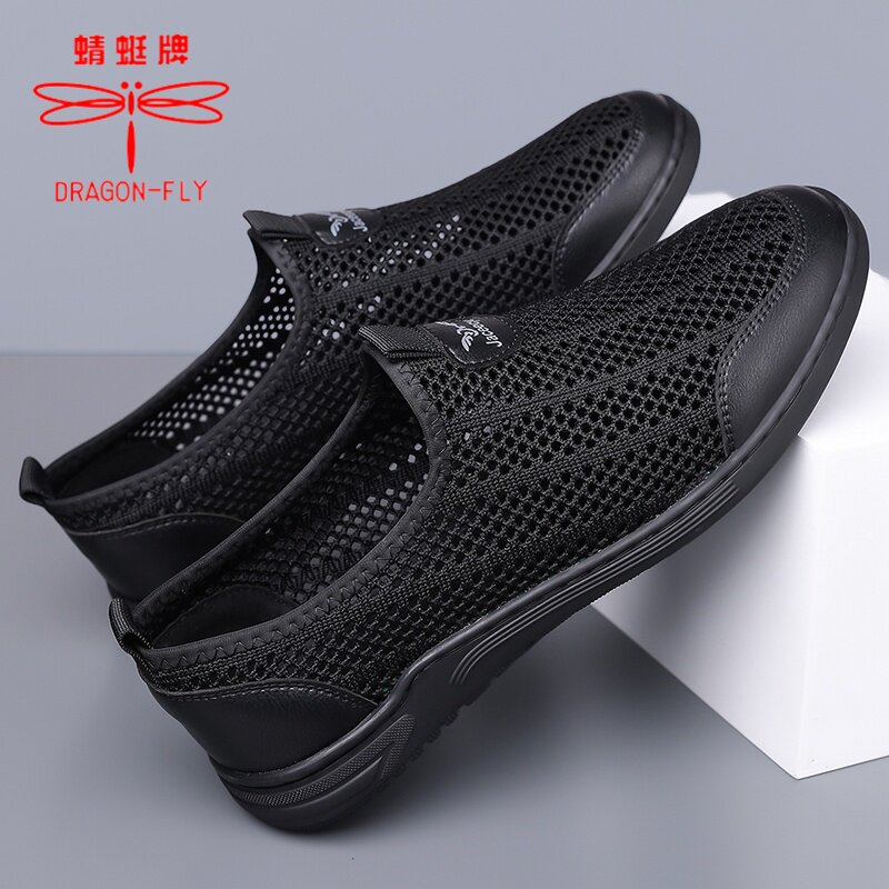 蜻蜓牌男鞋夏季透气网眼镂空网面运动休闲一脚蹬轻便软底防臭网鞋