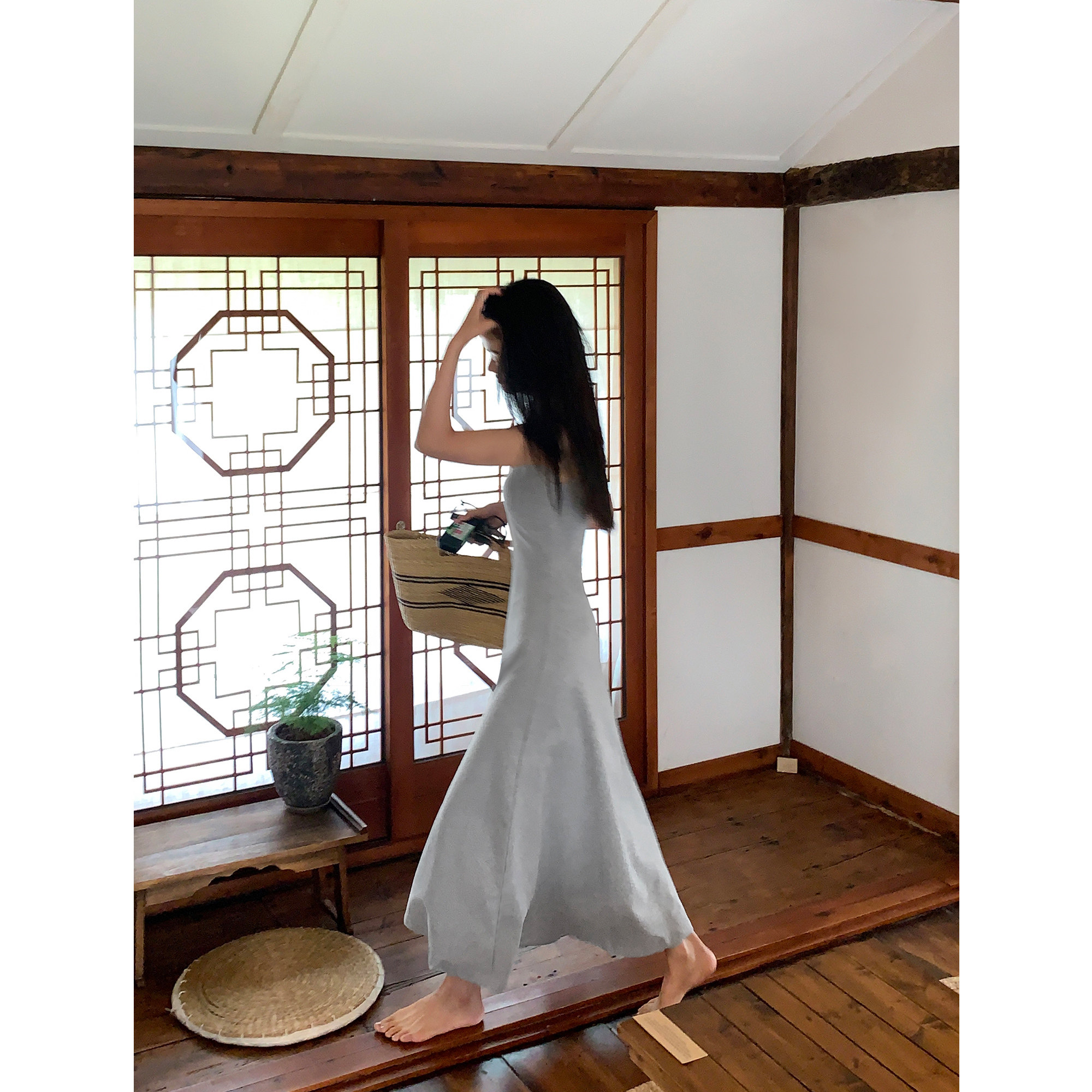 pusumede 黑色圆领针织背心连衣裙女夏季设计感收腰显瘦气质长裙