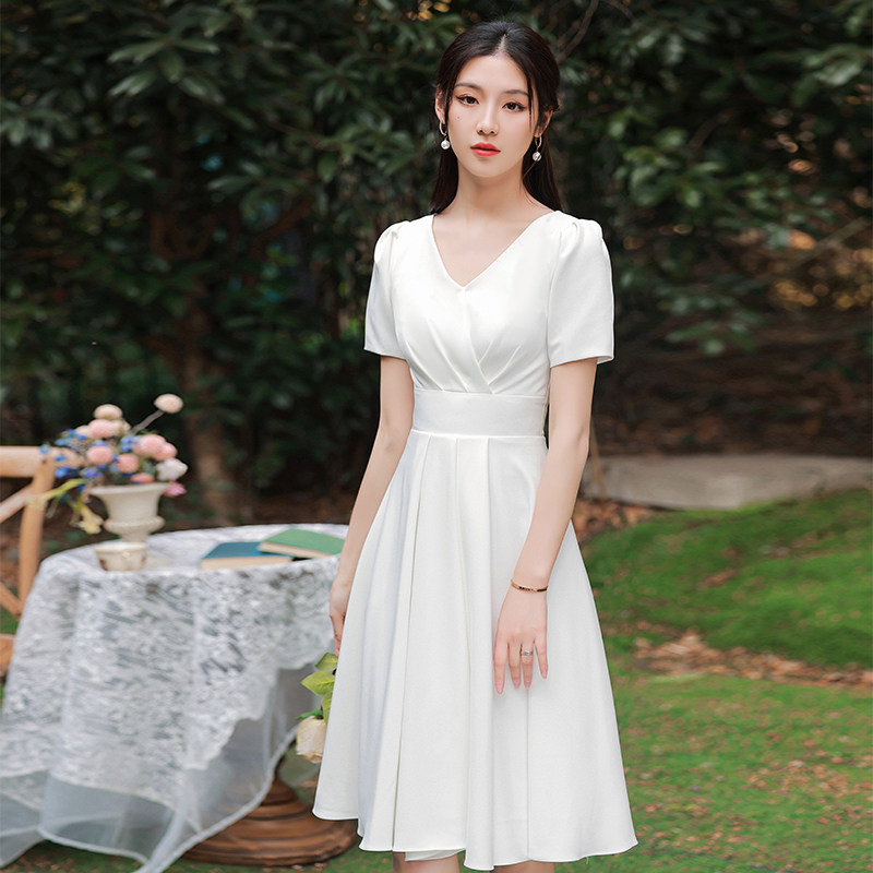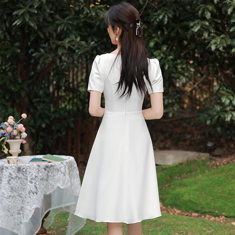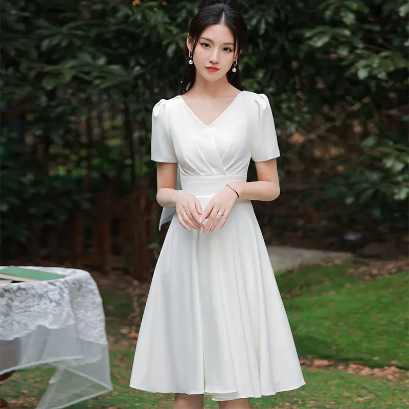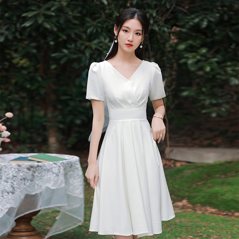 白色法式领证登记轻婚纱礼服女气质短款我秋冬连衣裙平时可穿