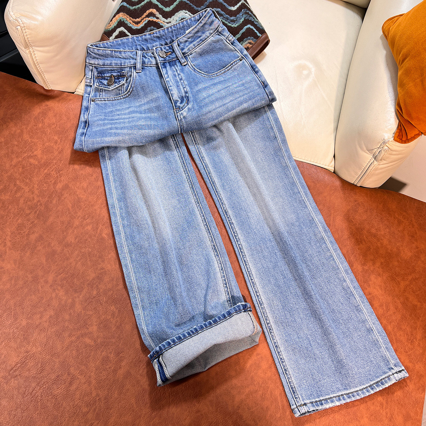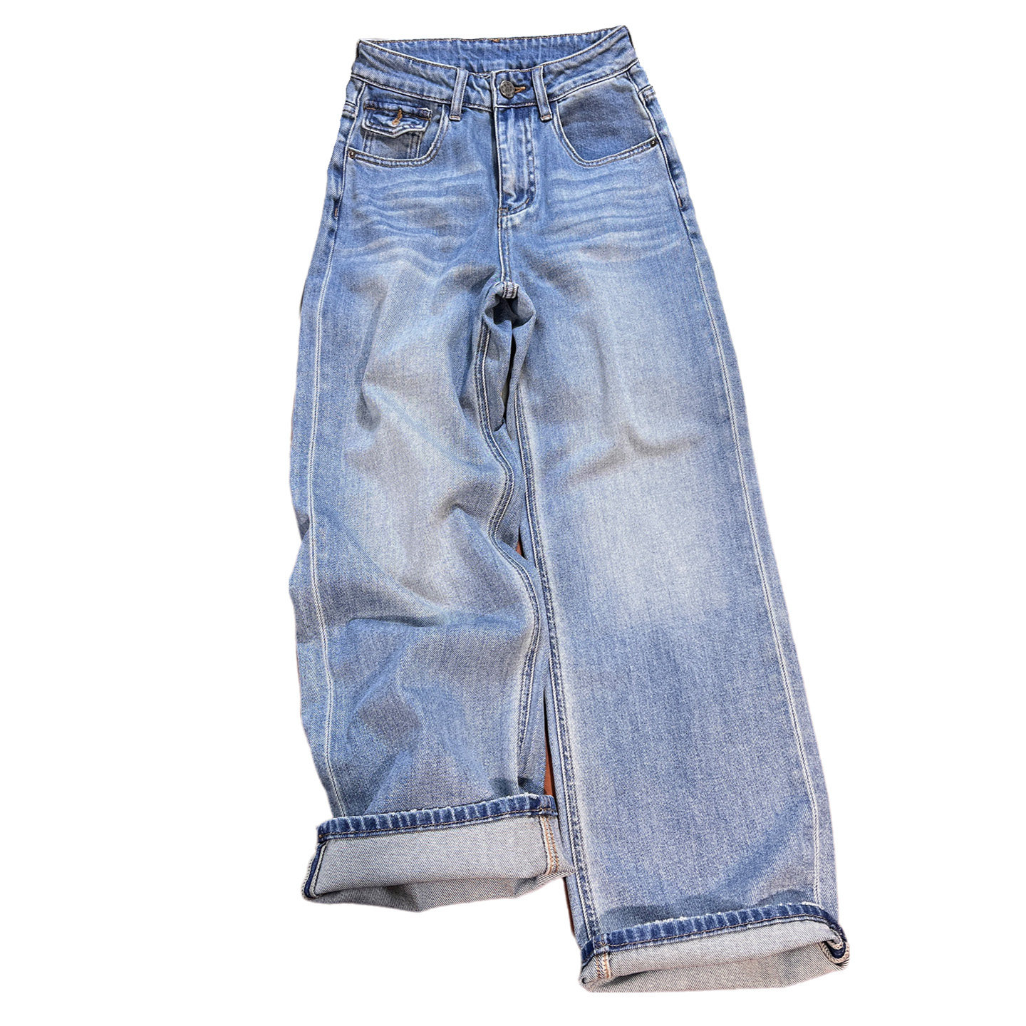 浅蓝色高腰无弹直筒牛仔裤女春季2026新款宽松显瘦垂感窄版阔腿裤