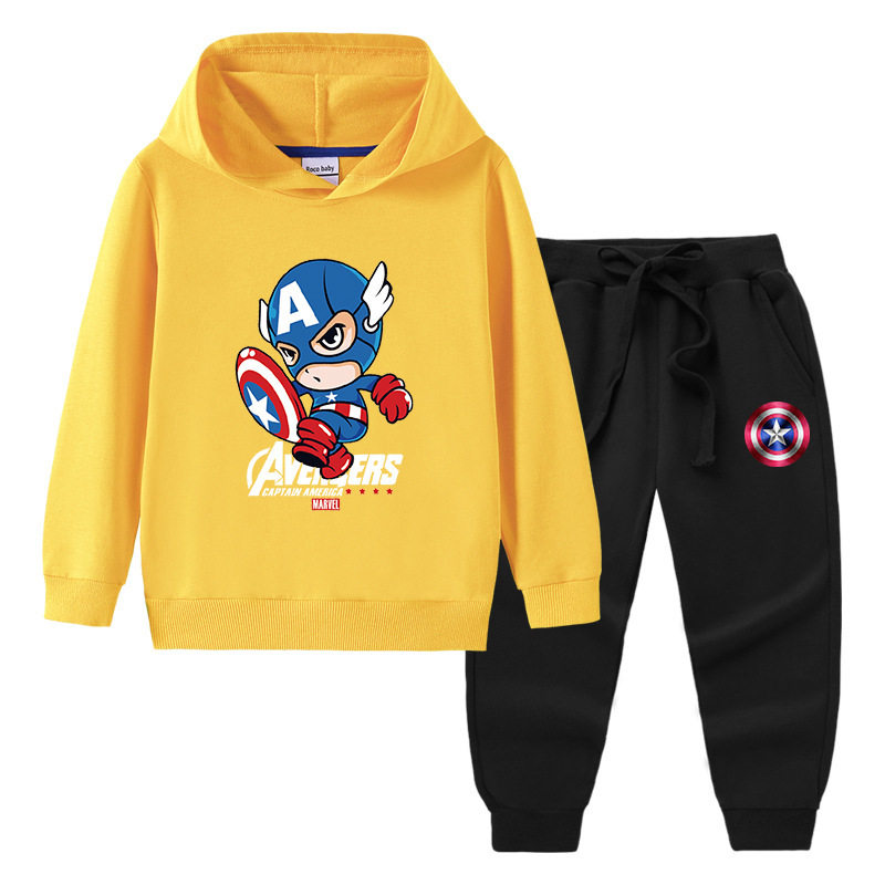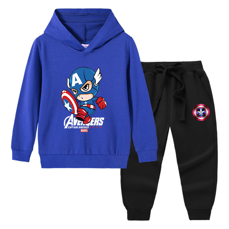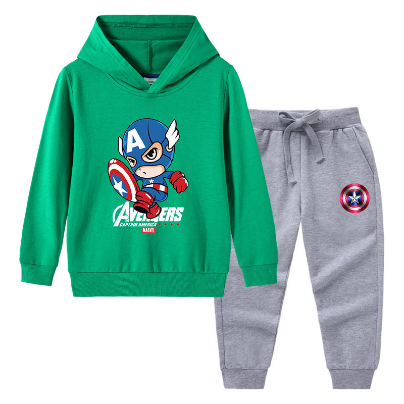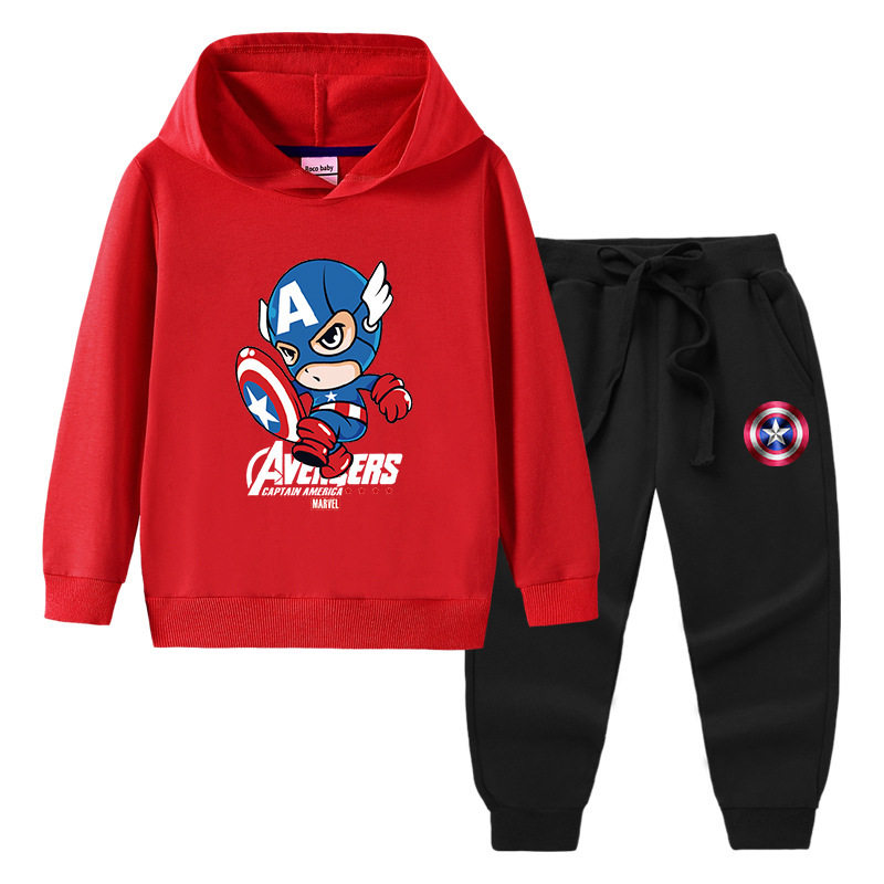 美国队长衣服儿童长袖套装男童春装薄款两件套中大童春季连帽卫衣