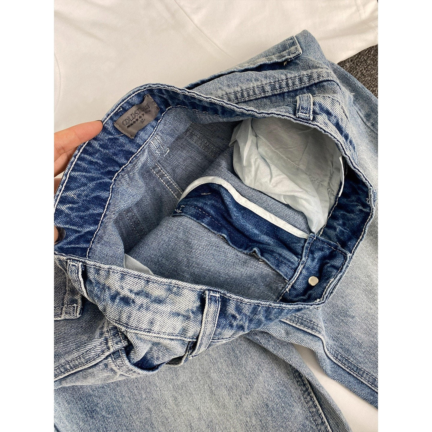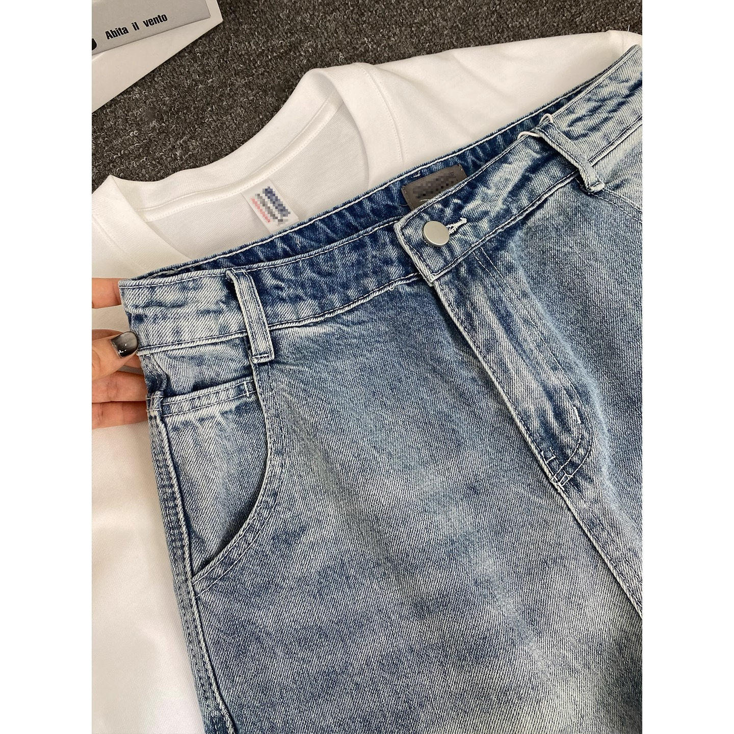 浅蓝色水洗牛仔裤男款春秋美式复古微喇裤cleanfit薄款直筒裤子